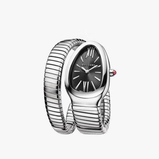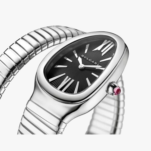ساعة بولغاري Bvlgari للنساء Mirror Original موديل 102824 Serpenti Tubogas لون أسود و استيك معدن ستانلس لون فضي.