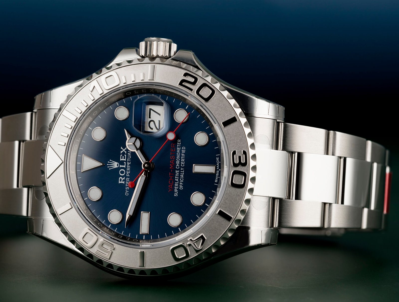 ساعة رولكس Rolex للرجال ميرور اوريجنال موديل Yacht-Master 116622-0001 لون أزرق و استيك معدن ستانلس لون فضي.