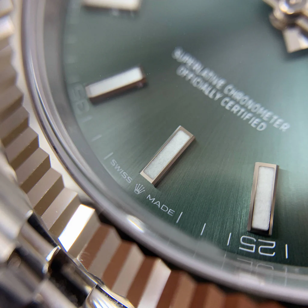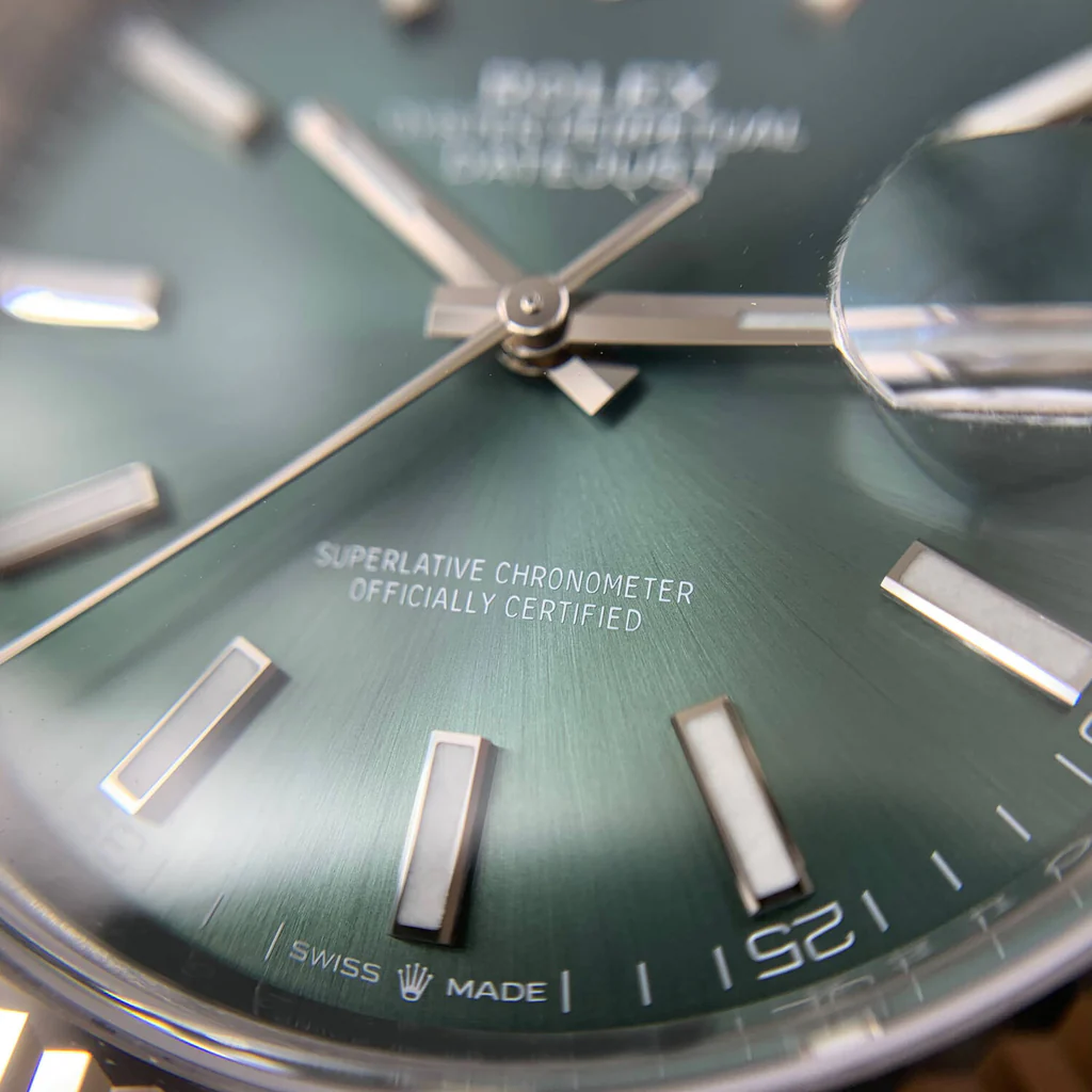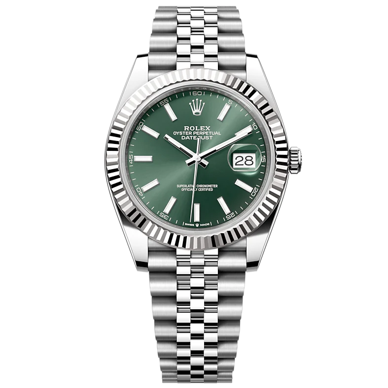ساعة رولكس Rolex للرجال ميرور اوريجنال موديل Datejust 126334-0028 لون أخضر و استيك معدن ستانلس لون فضي.