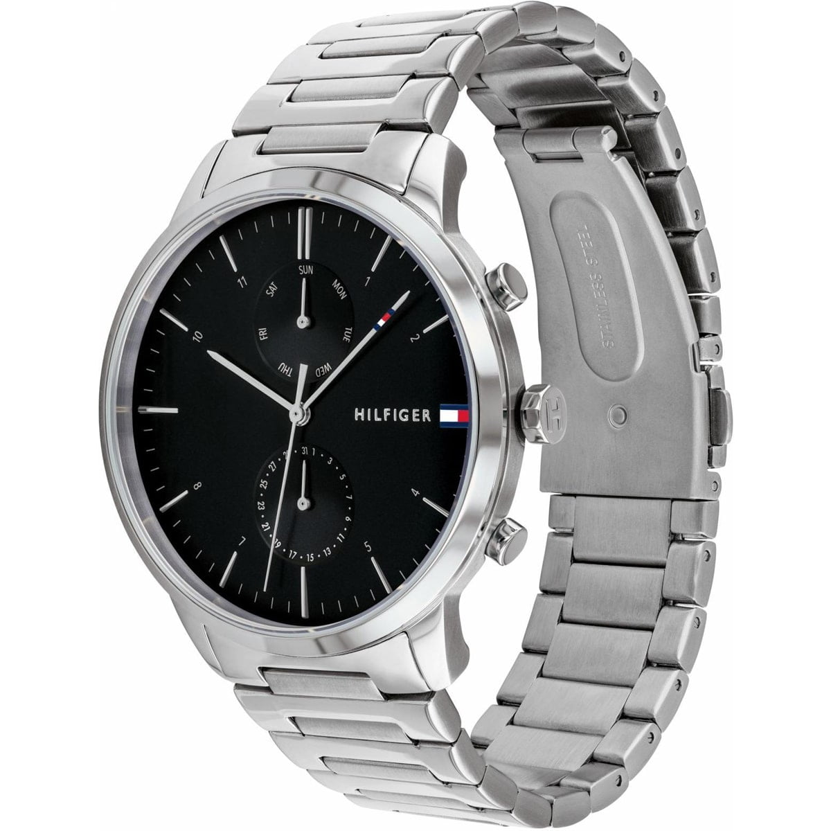 ساعة تومي هيلفيغر Tommy Hilfiger للرجال أصلية موديل 1710407 لون اسود و استيك معدن ستانلس لون فضي.
