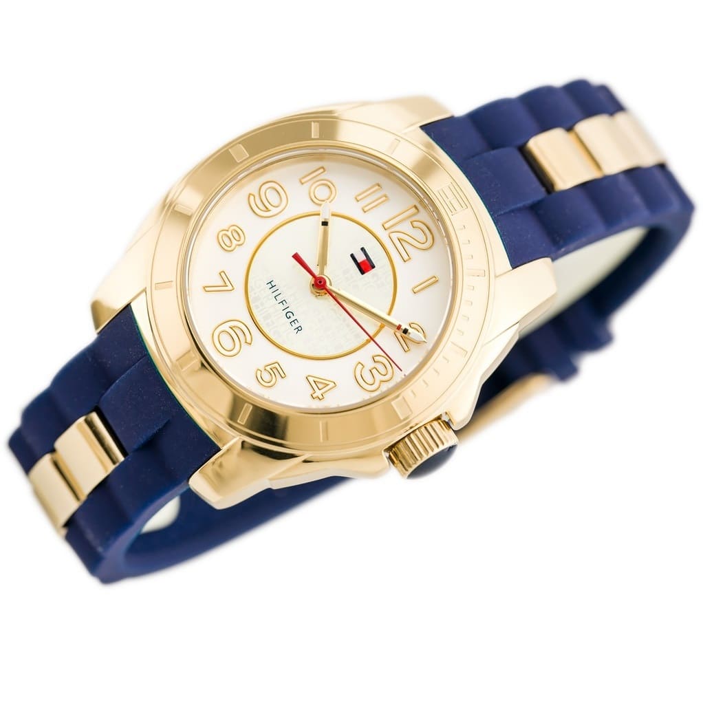 ساعة تومي هيلفيغر Tommy Hilfiger للنساء اصلية موديل K2 1781307 لون ابيض واستيك سيليكون مطاط لون ازرق.