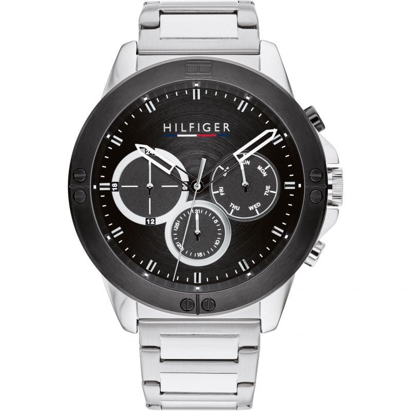 ساعة تومي هيلفيغر للرجال أصلية موديل (هاري) Harley 1791890 بلون اسود و استيك ستنلس ستيل بلون فضي