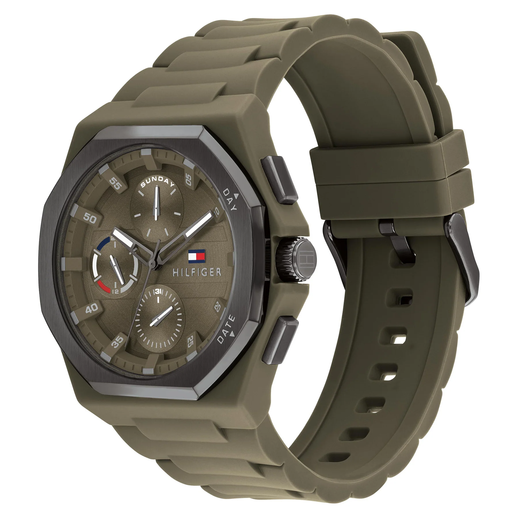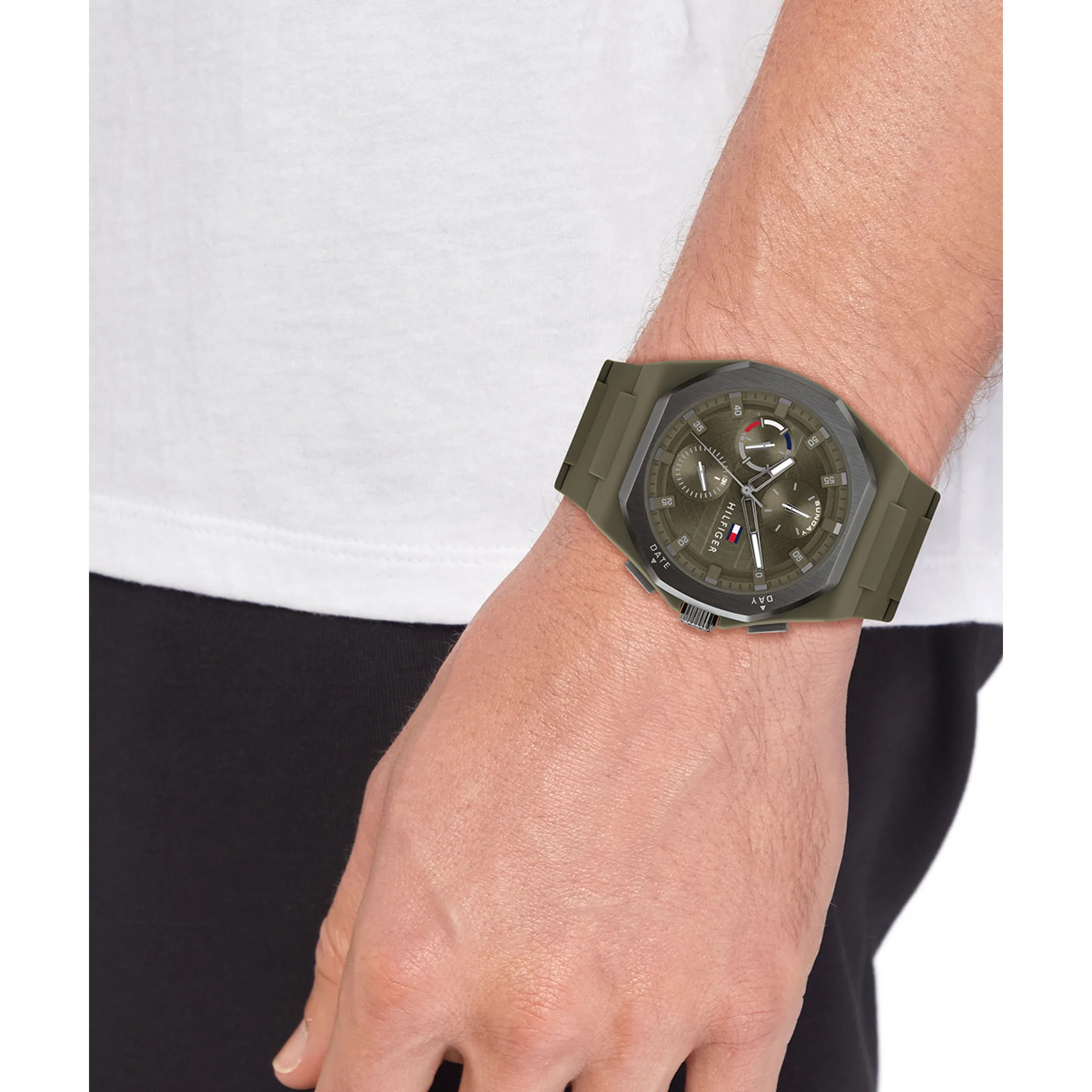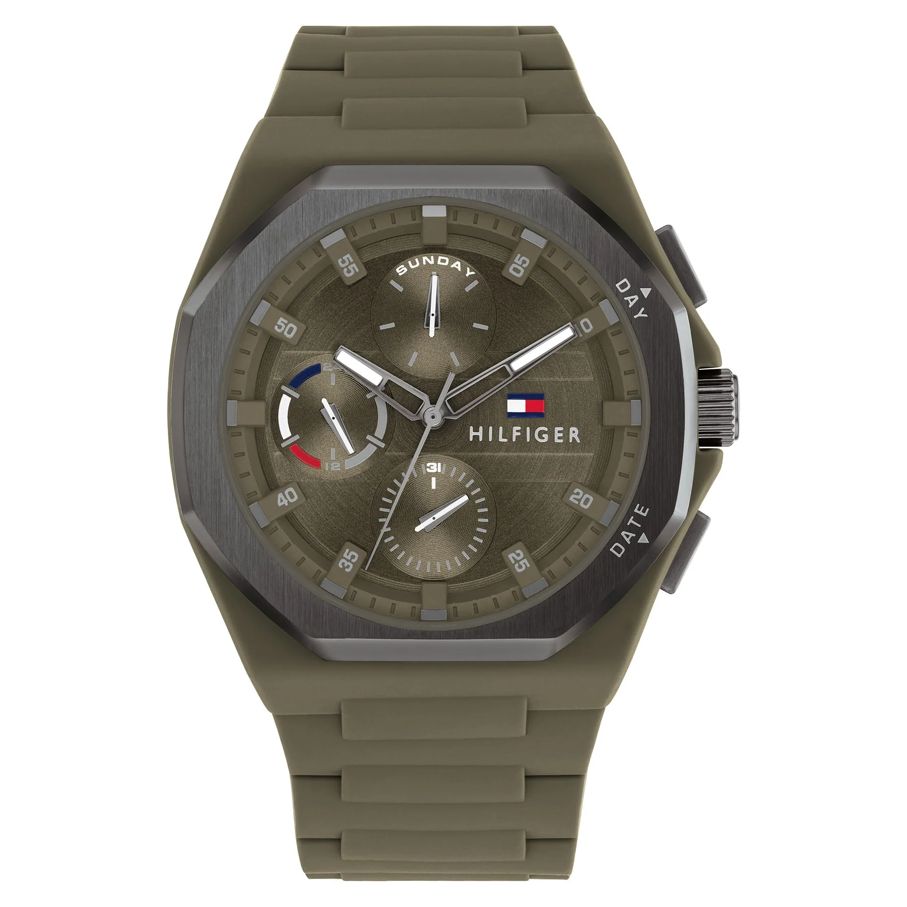 ساعة تومي هيلفيغر للرجال أصلية موديل 1792121 لون اخضر و استيك سليكون مطاط لون اخضر.