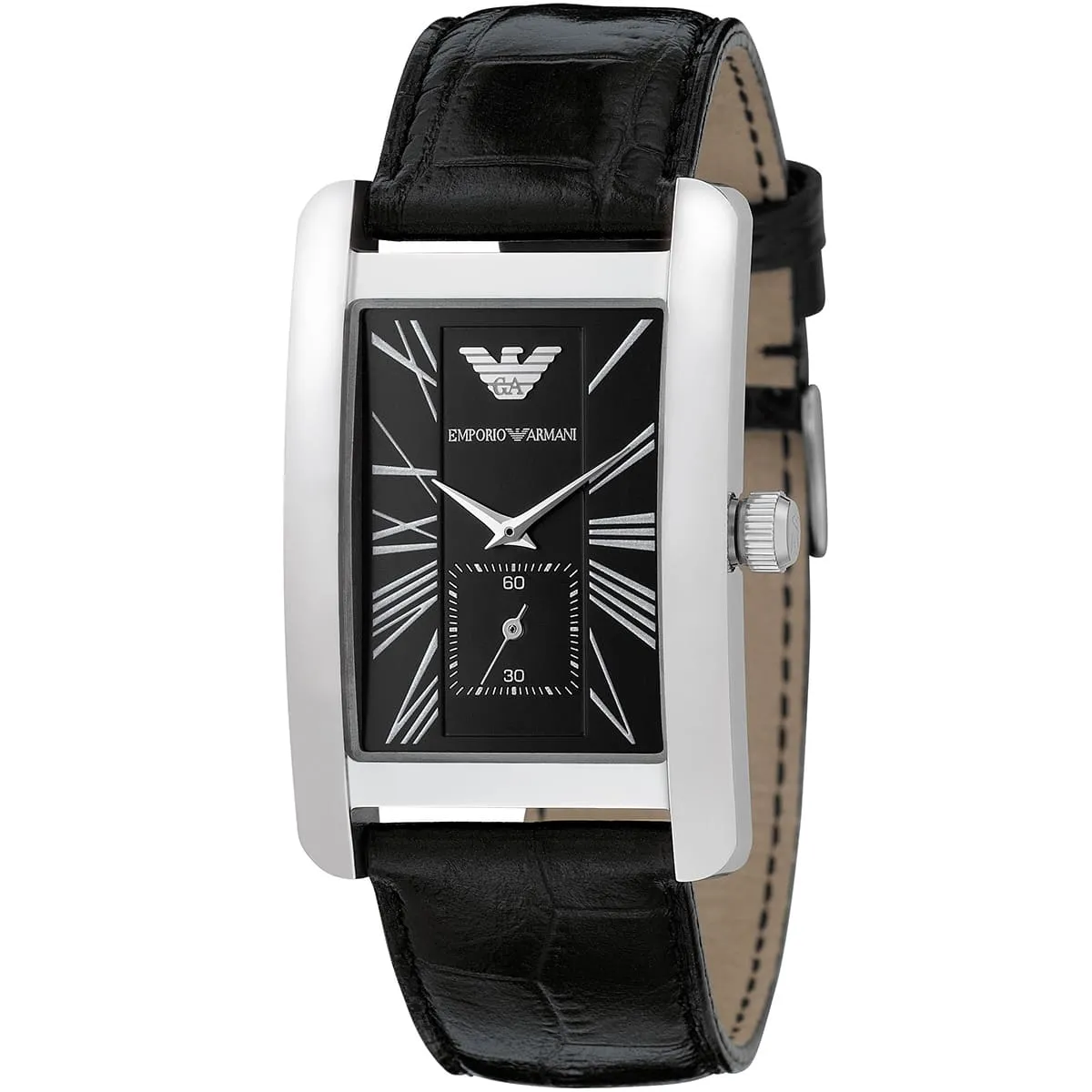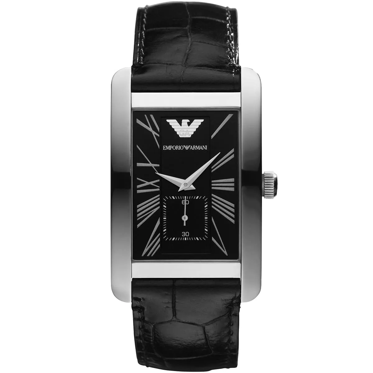 ساعة امبوريو ارماني Emporio Armani للرجال أصلية موديل Classic AR0143 لون اسود و استيك جلد طبيعي لون اسود.