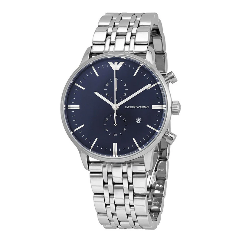 ساعة امبوريو ارماني Emporio Armani للرجال اصلية موديل AR80013 لون ازرق واستيك معدن ستانلس لون فضي.