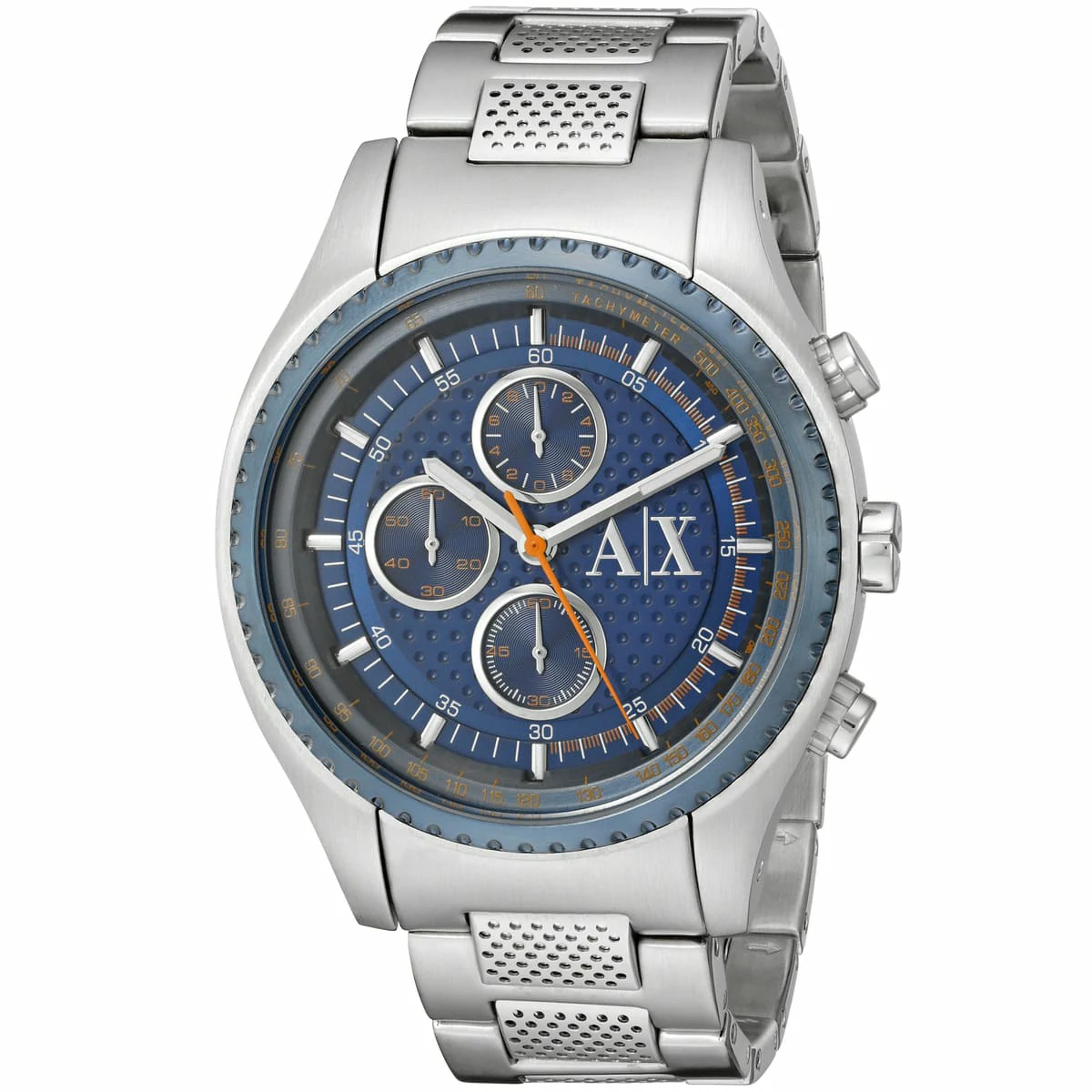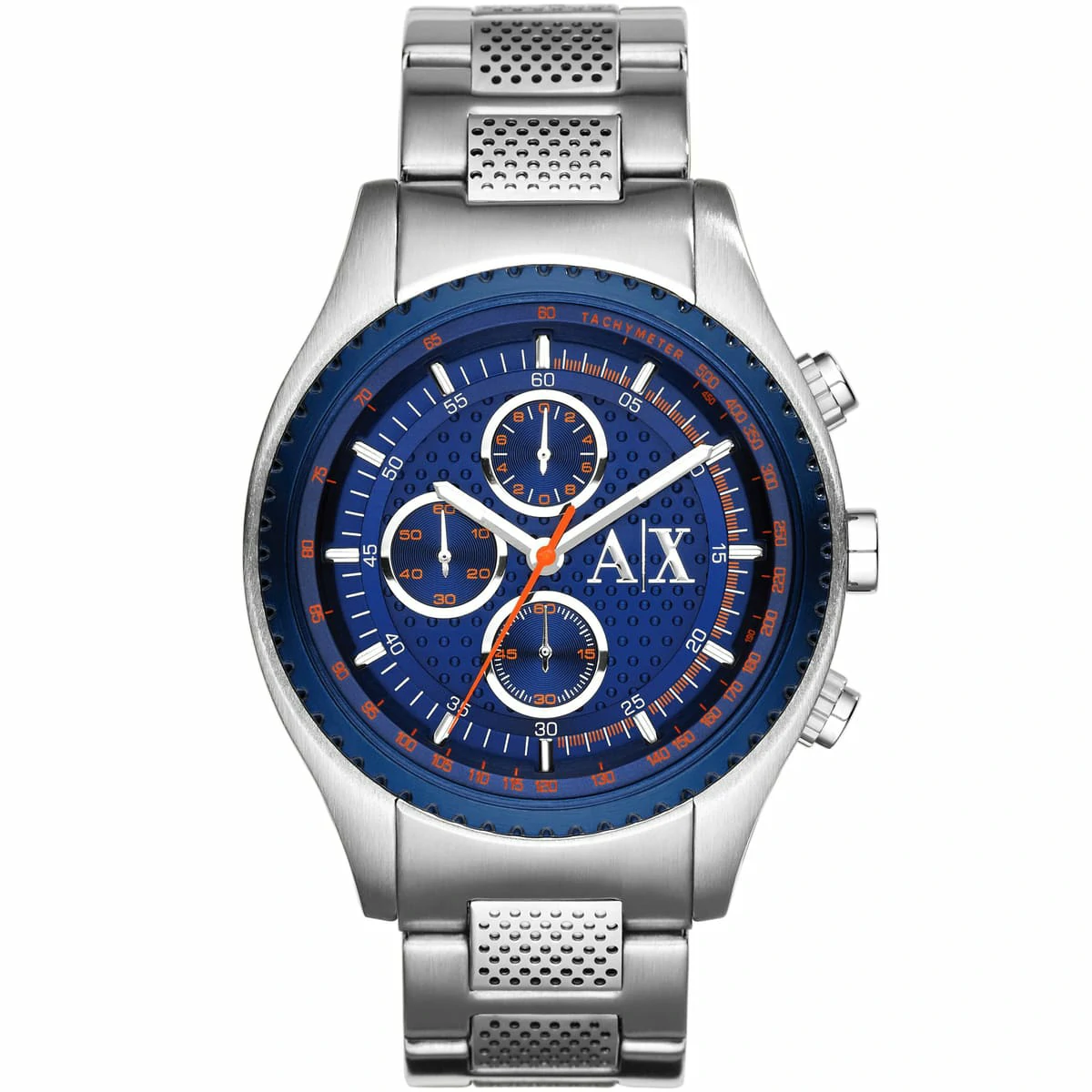 ساعة ارماني اكستشنج (Armani Exchange AX) للرجال أصلية موديل AX1607 The-Driver-Two لون ازرق و استيك معدن ستانلس ستيل لون فضي.