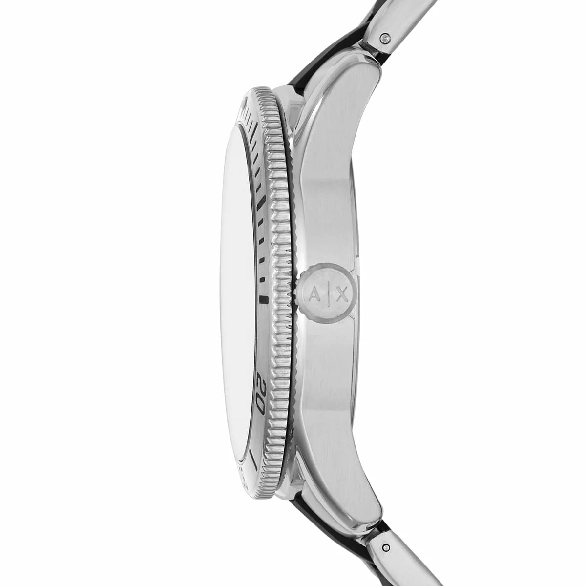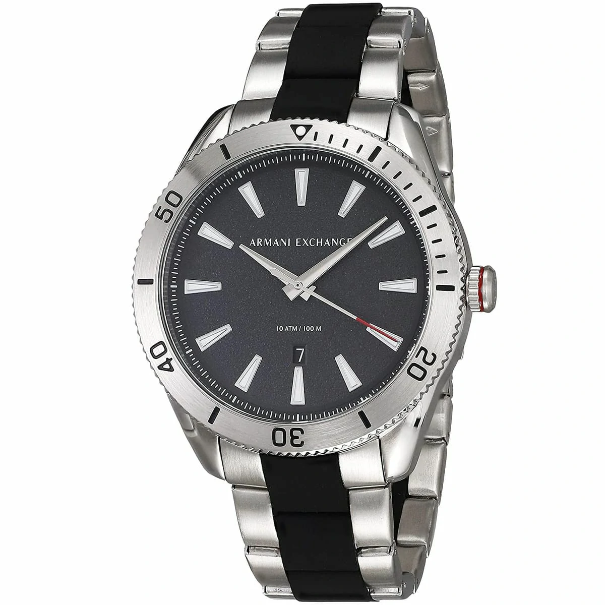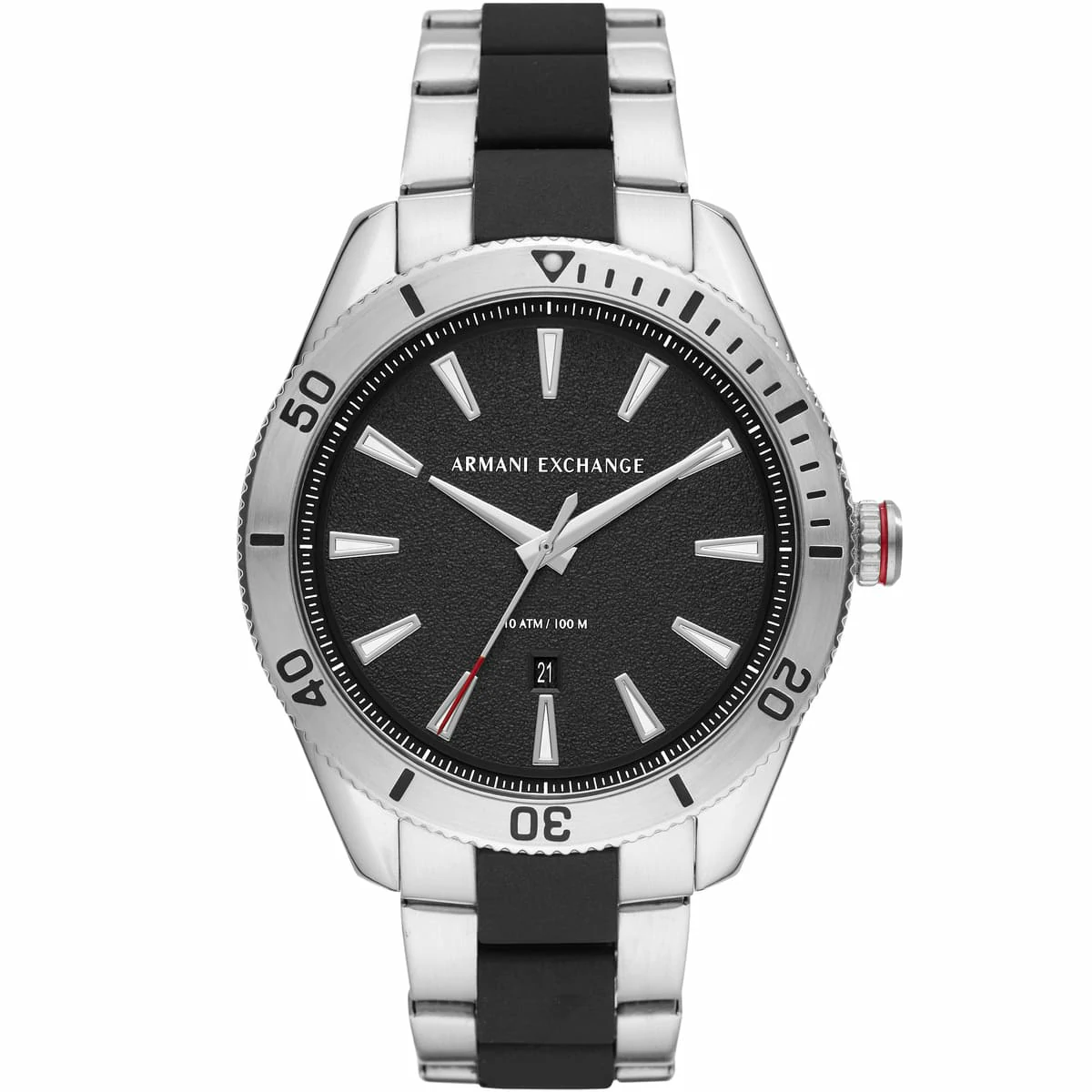 ساعة ارماني اكستشنج (Armani Exchange AX) للرجال أصلية موديل (انزو) AX1824 Enzo لون اسود و استيك معدن ستانلس ستيل لون فضي * اسود.