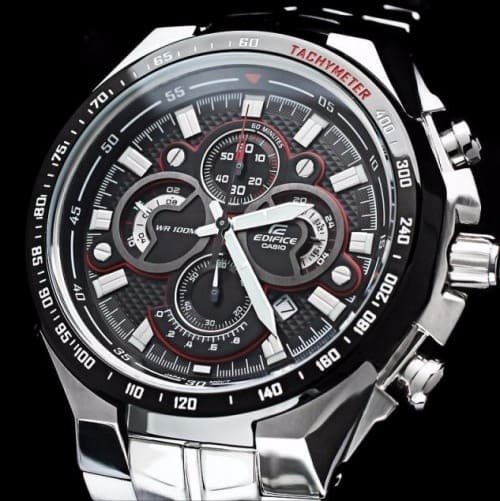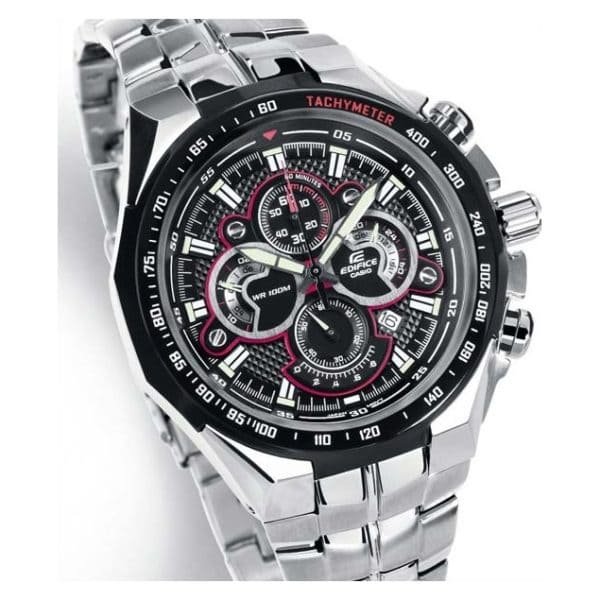 ساعة كاسيو اديفيس Casio Edifice للرجال Mirror Original موديل EF-554D-1A لون أسود و استيك معدن ستانلس لون فضي.
