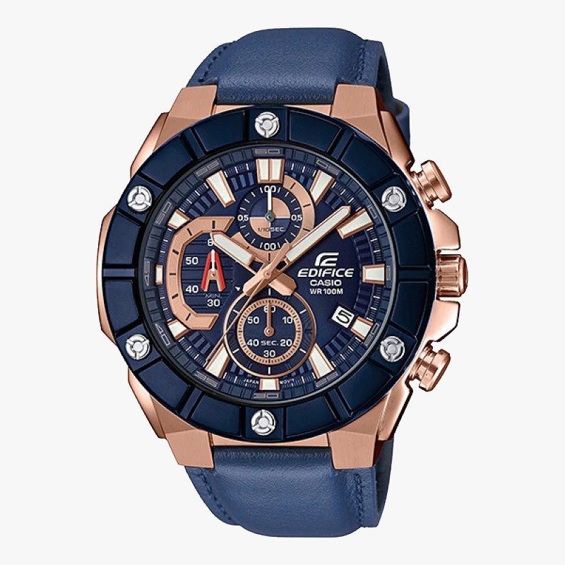 ساعة كاسيو اديفيس Casio Edifice للرجال Mirror Original موديل EFR-569BL-2AV لون أزرق و استيك جلد طبيعي لون أزرق.