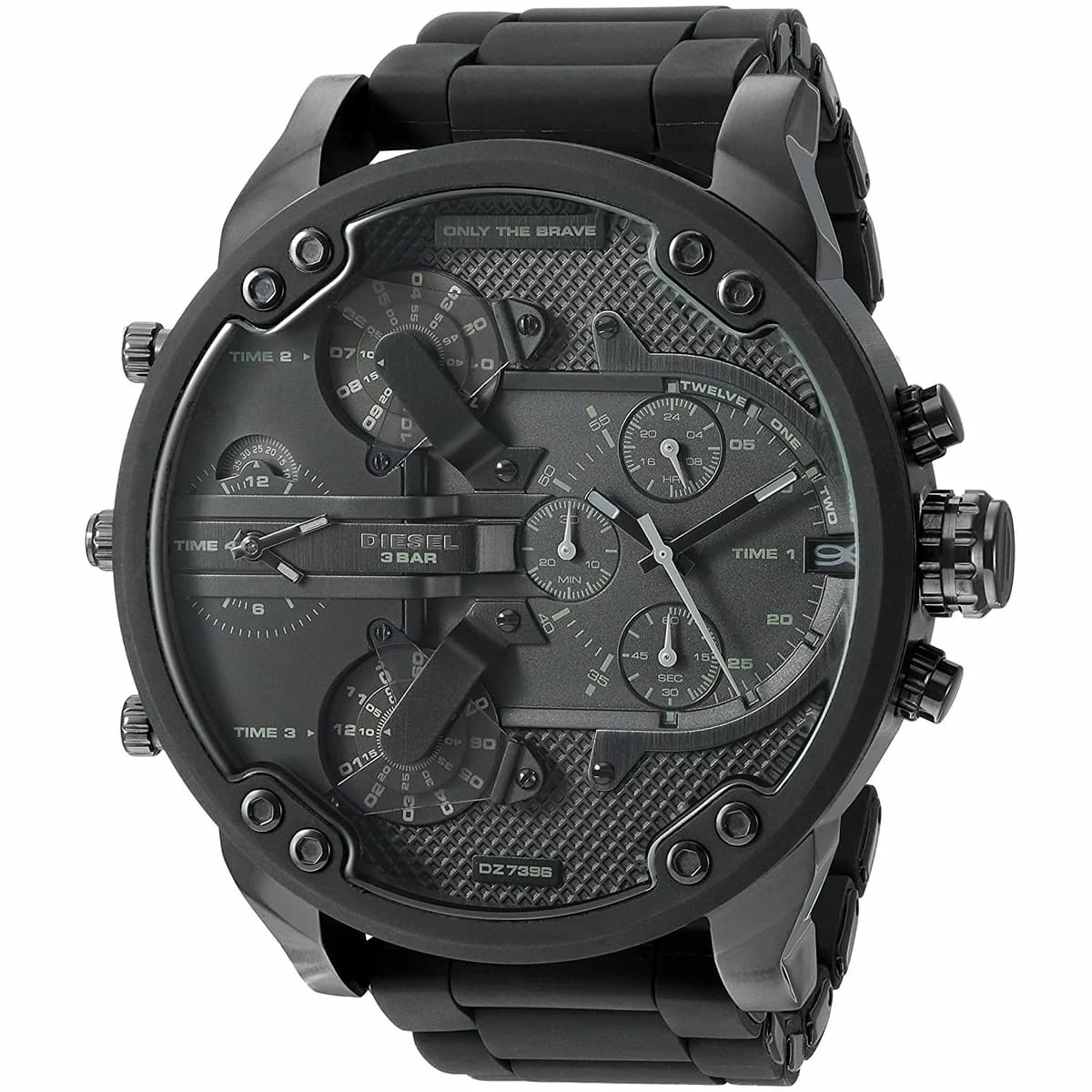 ساعة ديزل للرجال اصلية موديل (مستر دادي 2.0) Mr. Daddy 2.0 DZ7396 بلون اسود واستيك لون اسود