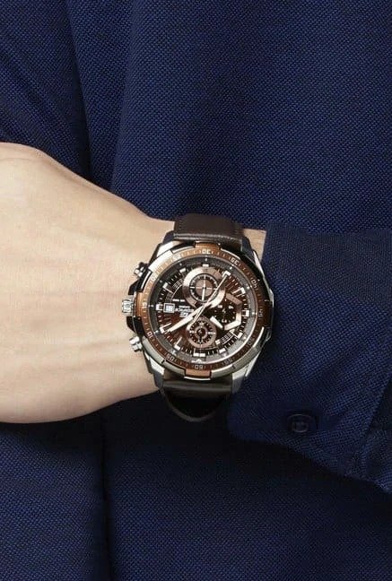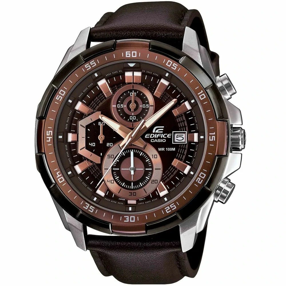 ساعة كاسيو اديفيس Casio Edifice للرجال Mirror Original موديل EFR-539L-5AV لون بني و استيك جلد طبيعي لون بني.