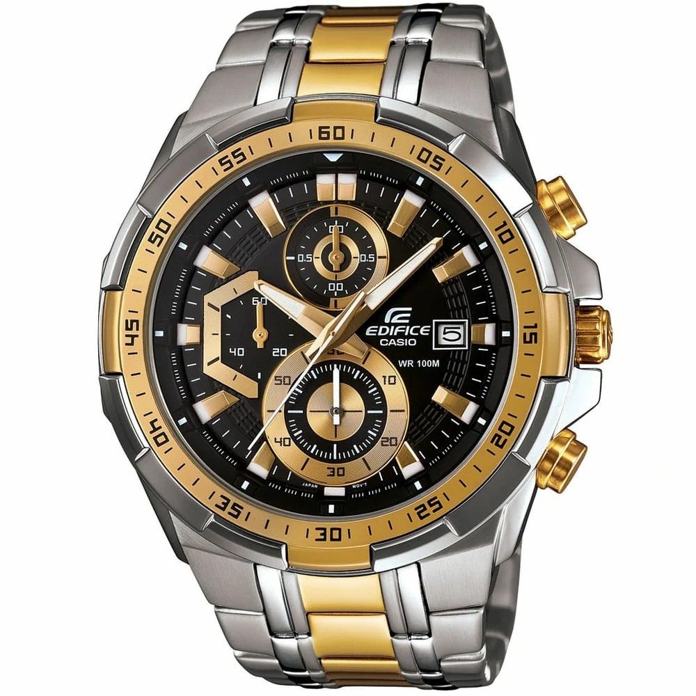 ساعة كاسيو اديفيس Casio Edifice للرجال Mirror Original موديل EFR539SG-1A لون أسود و استيك معدن ستانلس لون فضي * ذهبي.