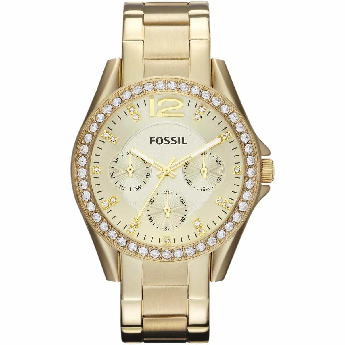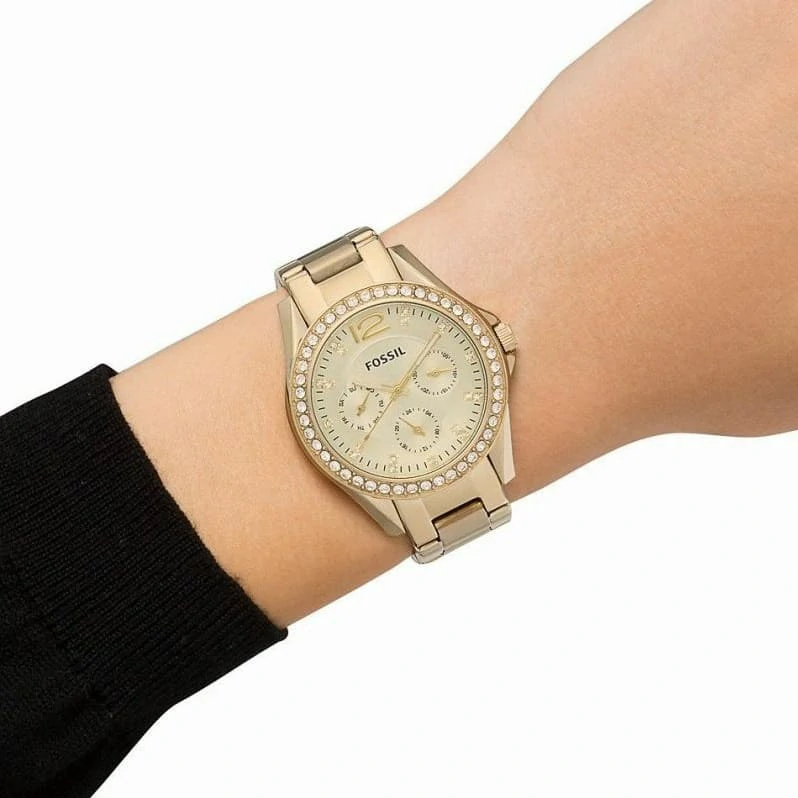 ساعة فوسيل Fossil للنساء اصلية موديل (رايلي) Riley ES3203 بلون ذهبي واستيك معدن بلون ذهبي