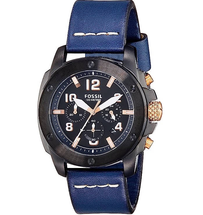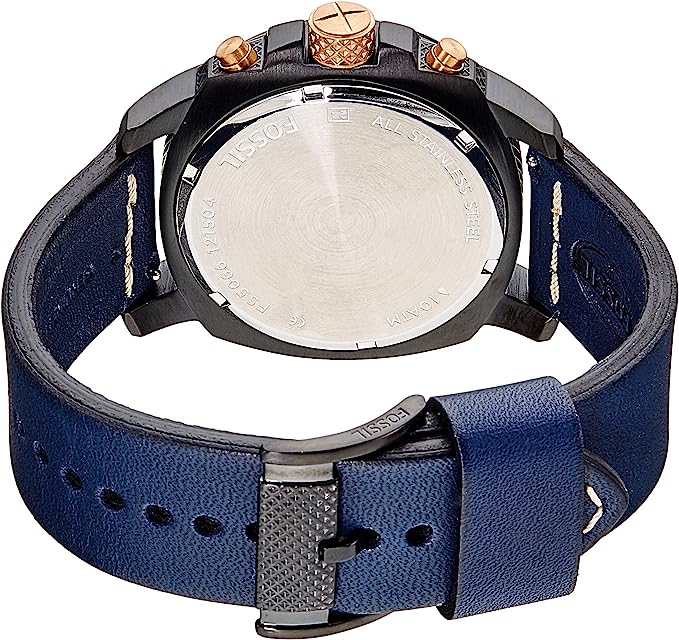 ساعة فوسيل Fossil أصليه للرجال موديل fs5066 لون اسود واوستيك جلد طبيعي لون ازرق.