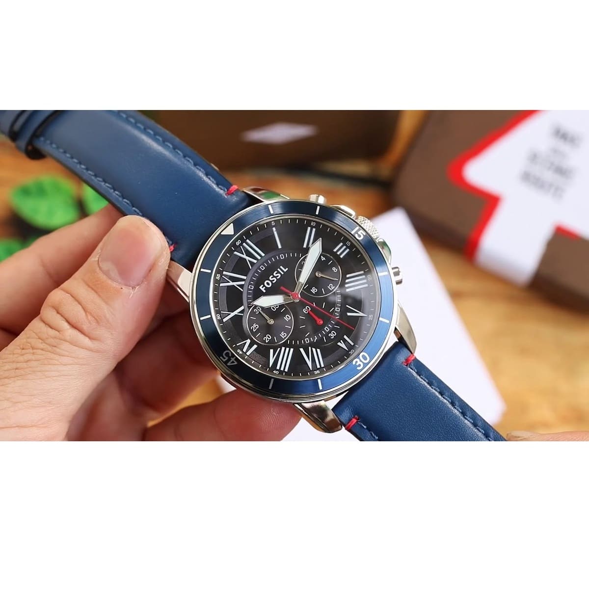 ساعة فوسيل للرجال اصلية موديل Grant Sport FS5373 لون ازرق واستيك جلد طبيعي لون ازرق.