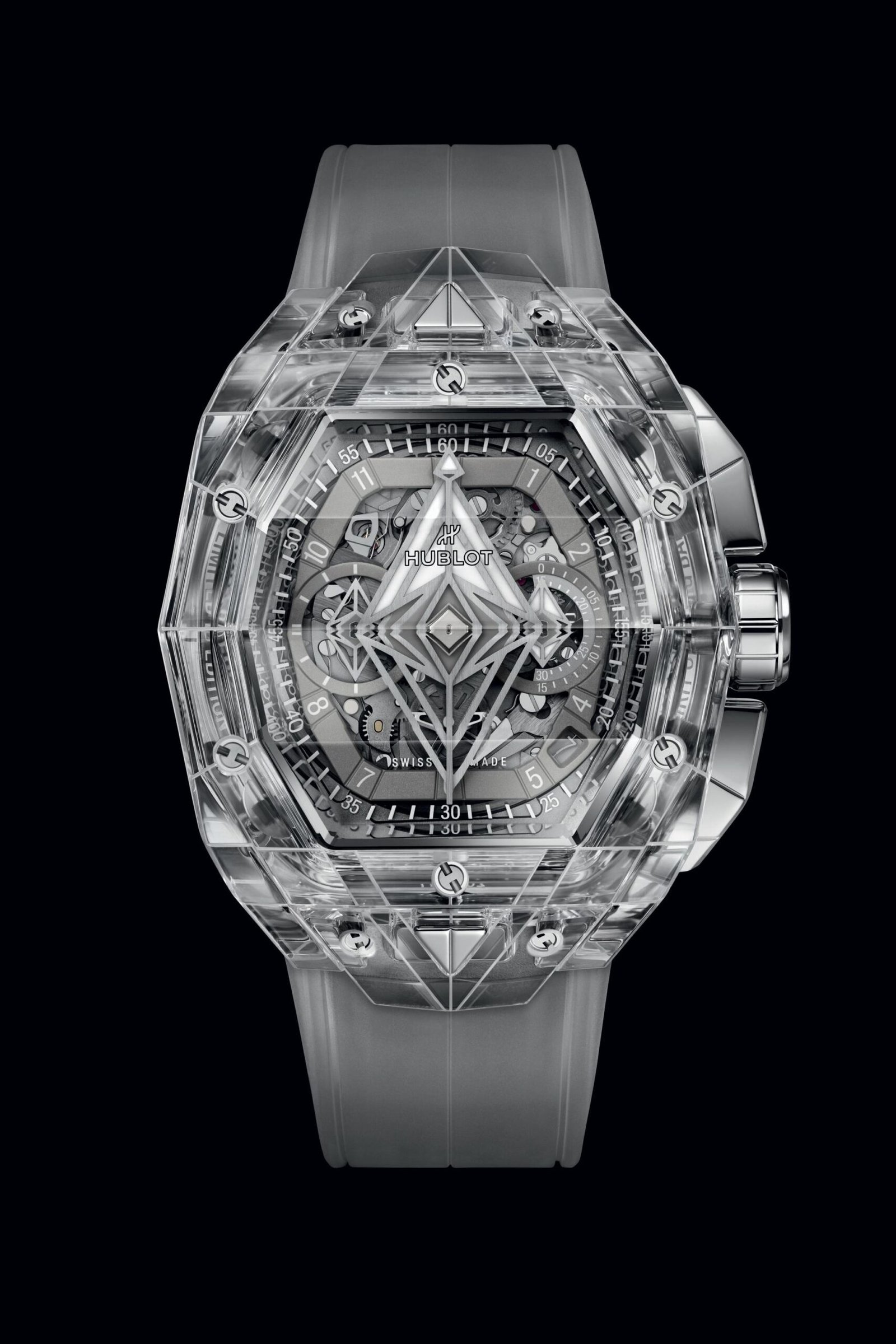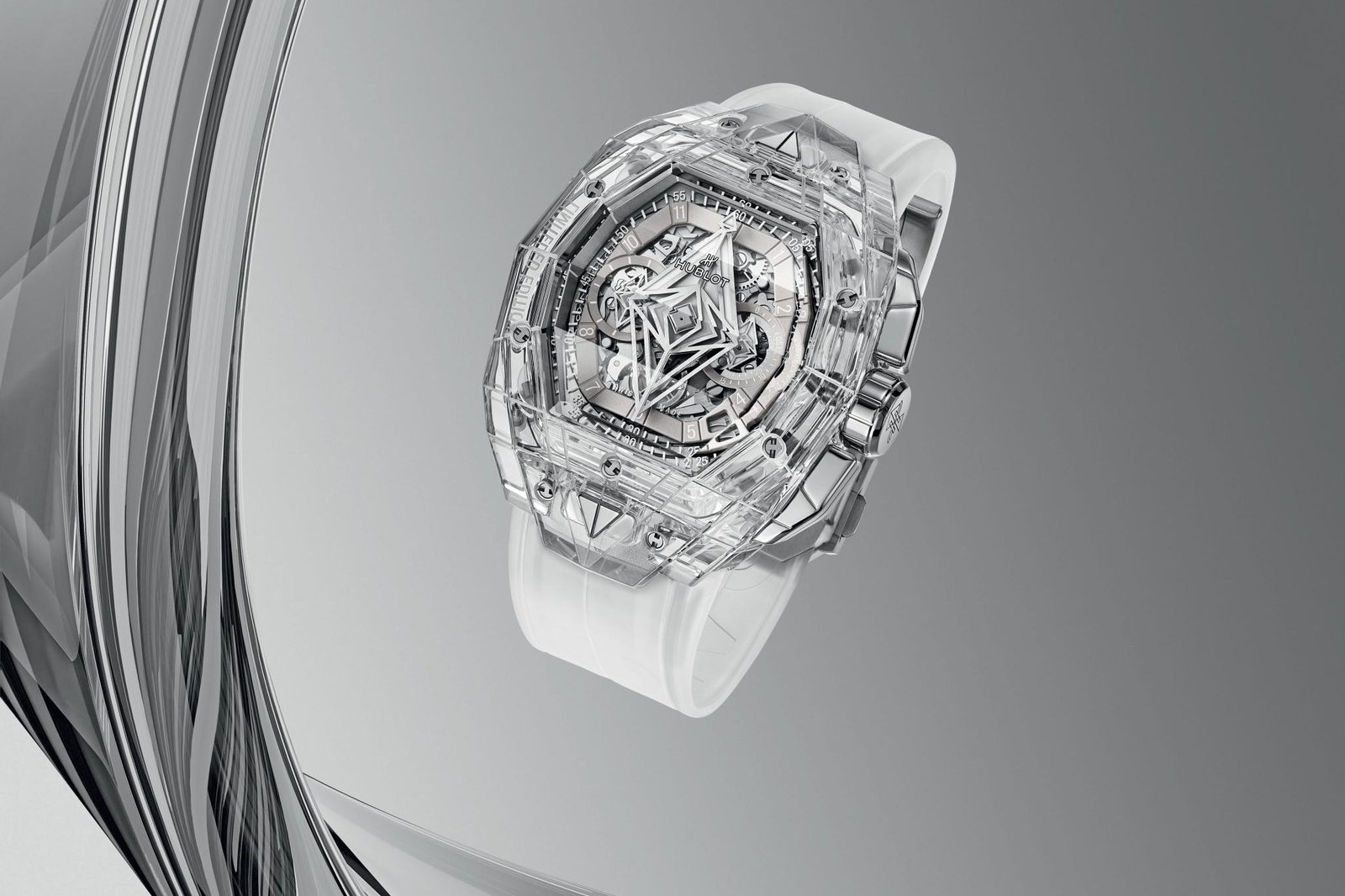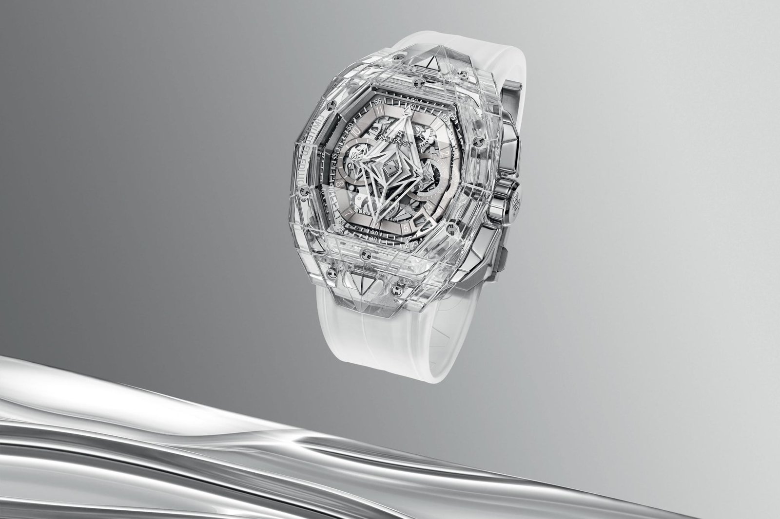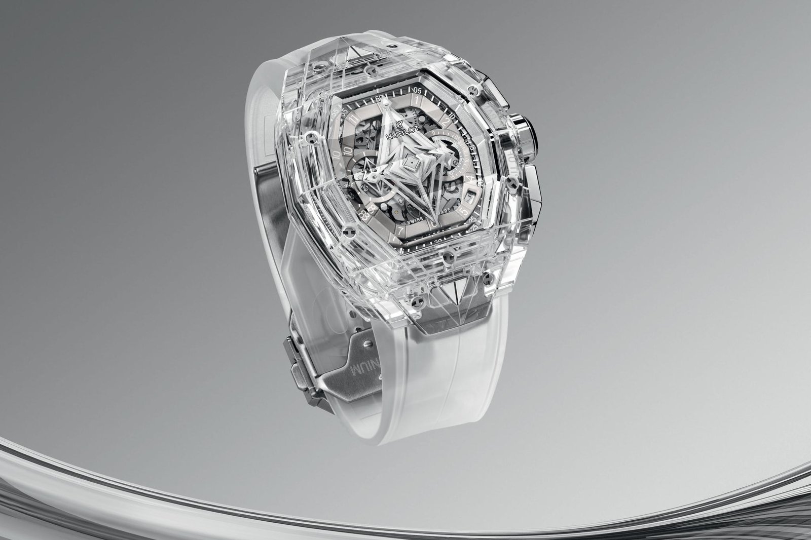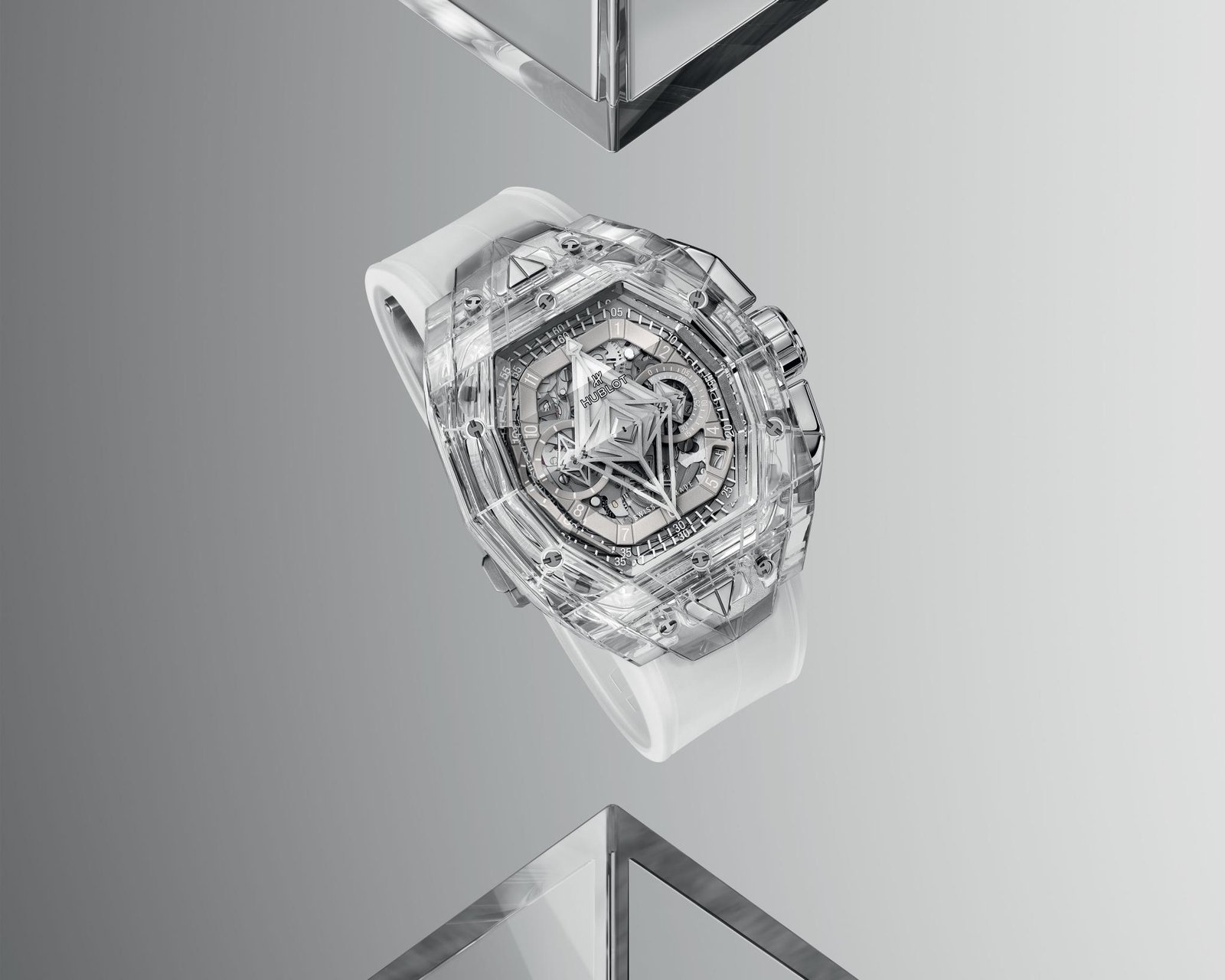ساعة هوبلت Hublot للرجال (ميرور اوريجنال) موديل Spirit of Big Bang 648.JX.0102.RT.MXM24 لون فضي و استيك سيليكون مطاط لون فضي.