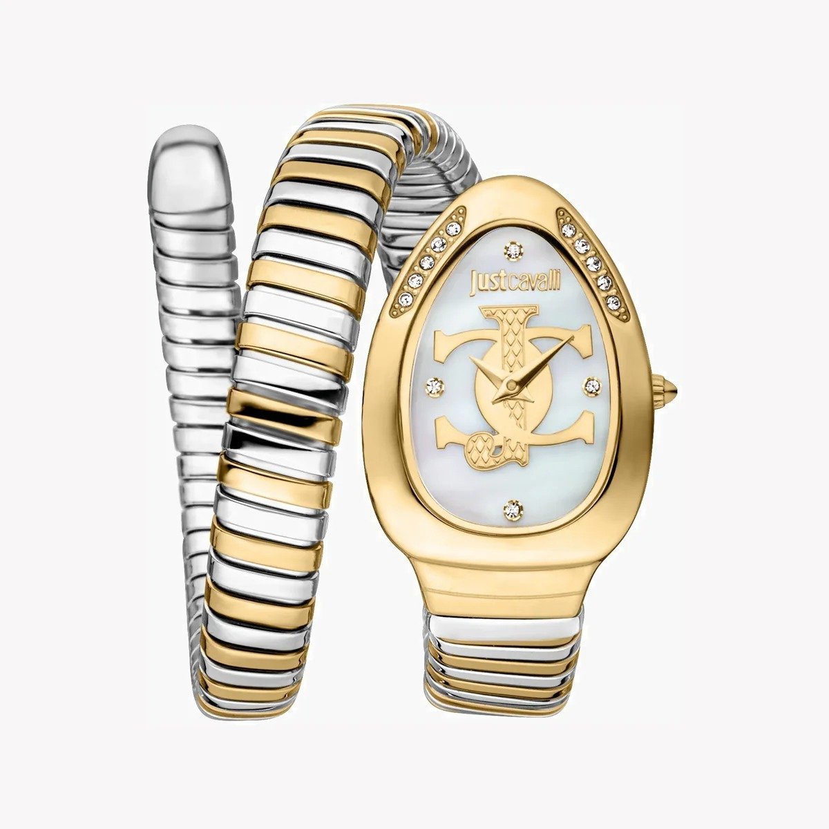 ساعة جاست كفالي Just Cavalli للنساء أصلية موديل JC1L227M0065 لون أبيض و استيك معدن ستانلس لون فضي * ذهبي.