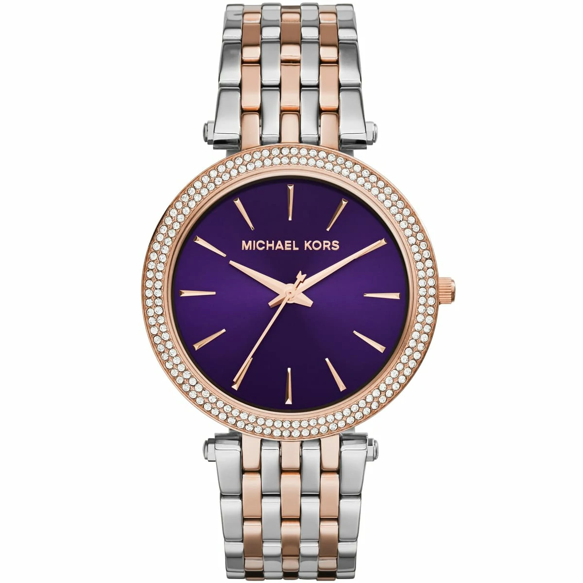 ساعة مايكل كورس Michael Kors للنساء أصلية موديل (دارسي) Darci MK3353 لون ازرق و استيك معدن ستانلس لون فضي * روز جولد.