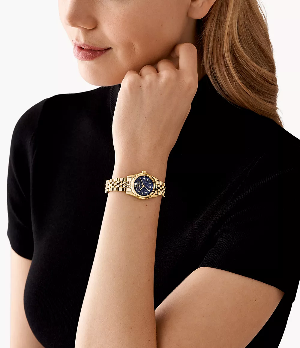 ساعة مايكل كورس Michael Kors للنساء أصلية موديل MK4802 لون ازرق و استيك معدن ستانلس لون ذهبي.