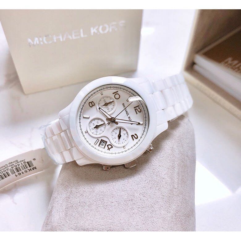 ساعة مايكل كورس Michael Kors للنساء اصلية موديل MK5161 لون ابيض و اوستيك سيراميك لون ابيض.