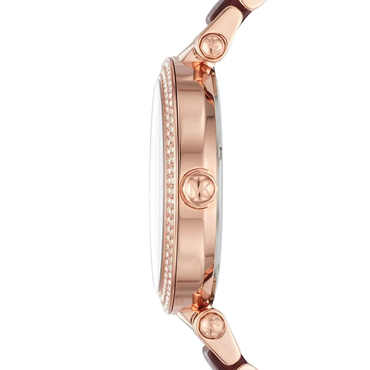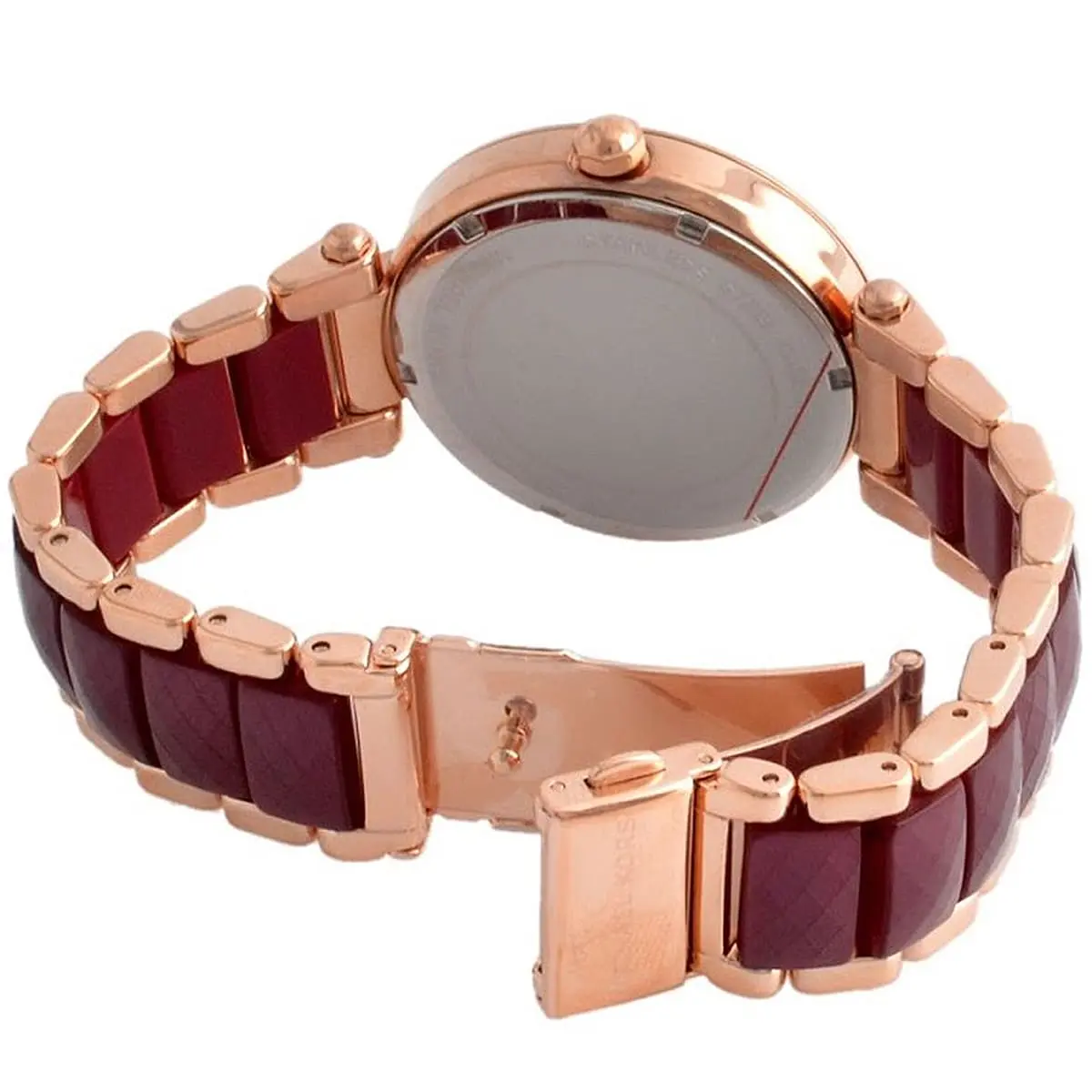 ساعة مايكل كورس Michael Kors للنساء أصلية موديل MK6412 Parker لون احمر و استيك معدن ستانلس لون احمر * روز جولد.