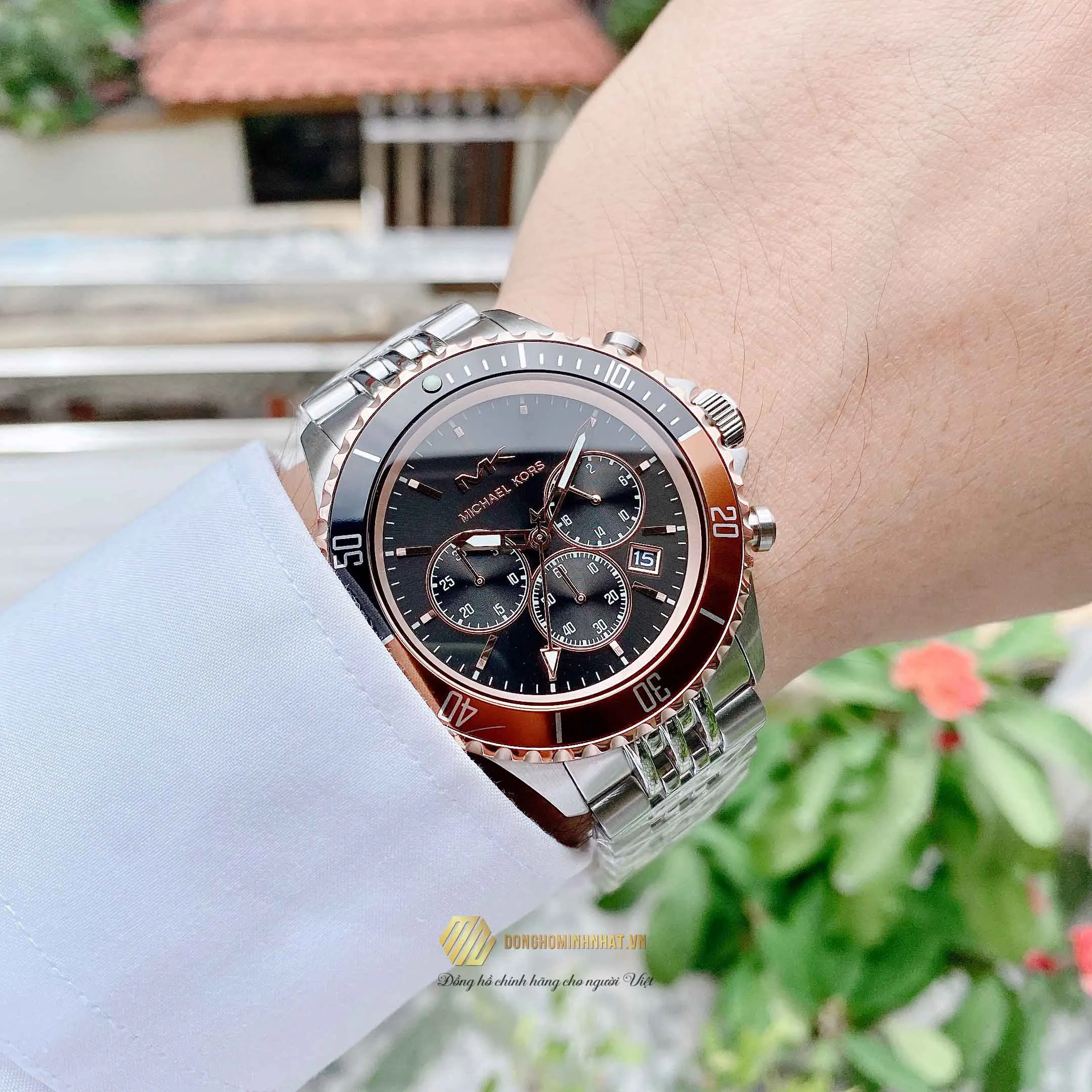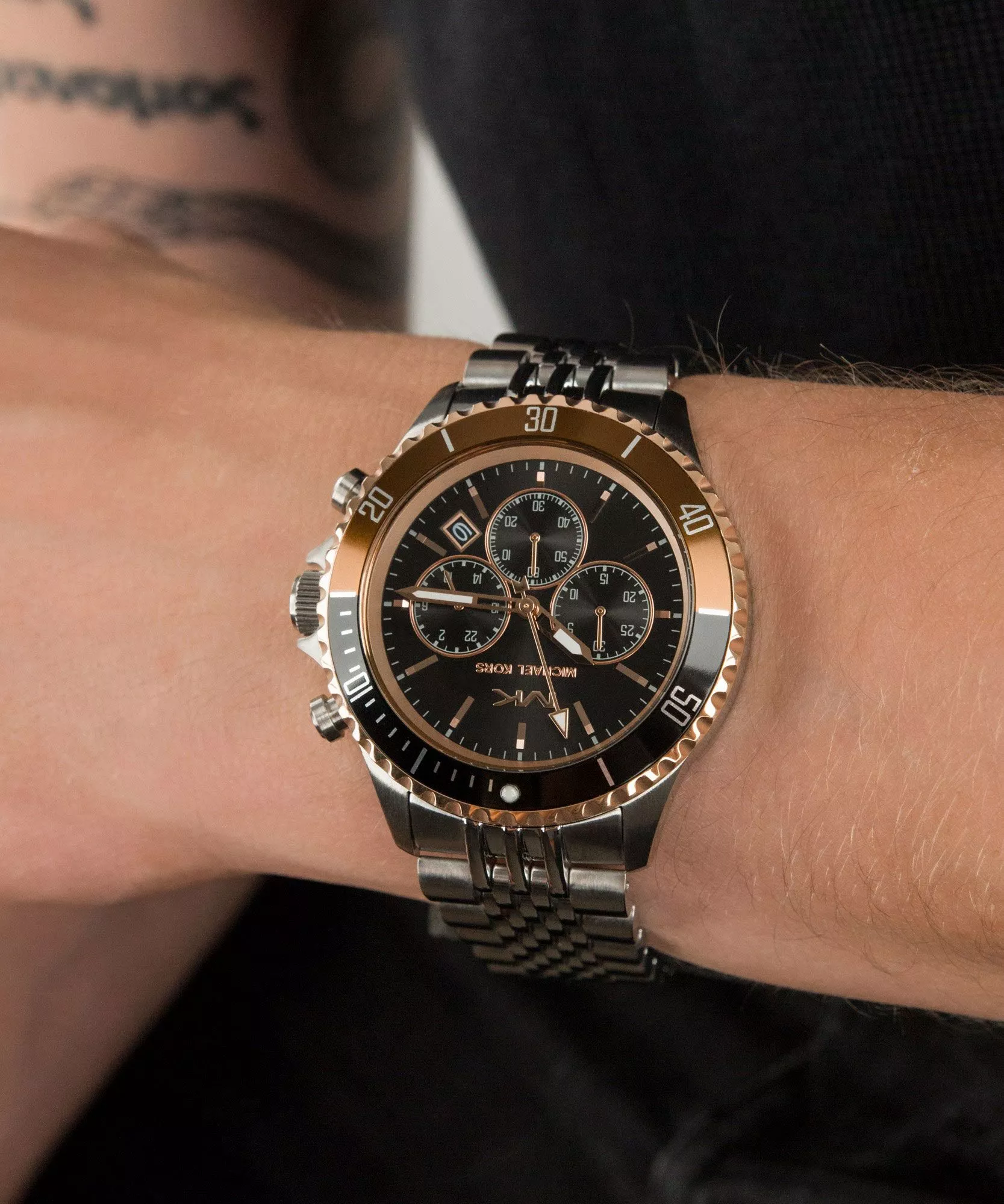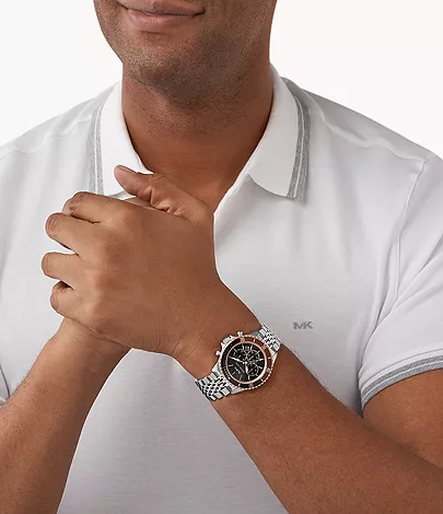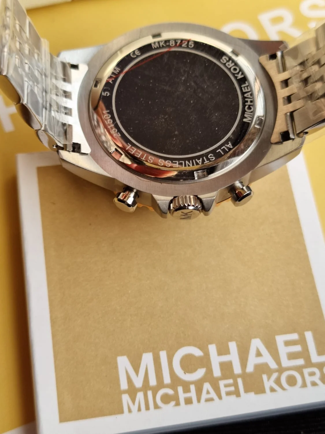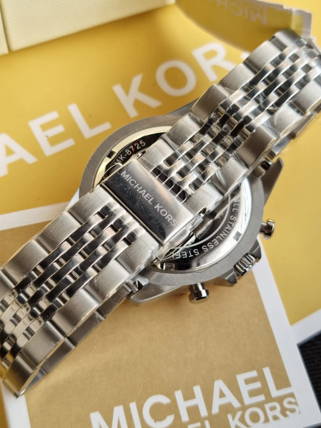 ساعة مايكل كورس Michael Kors للرجال أصلية موديل MK8725 لون اسود و اوستيك معدن ستانلس لون فضي.
