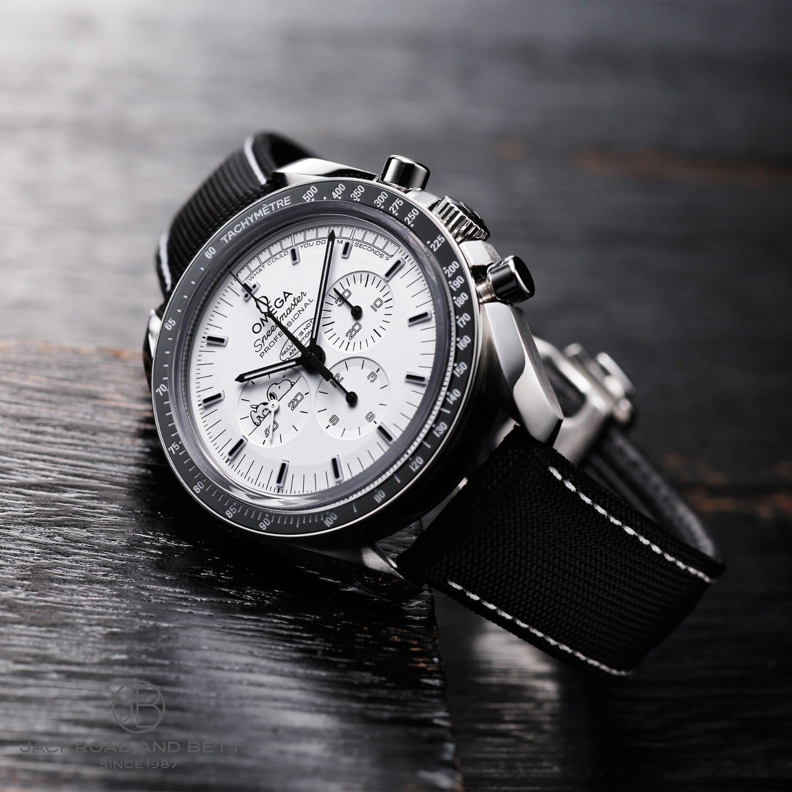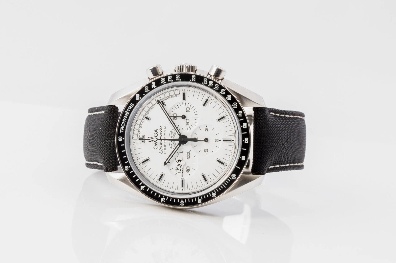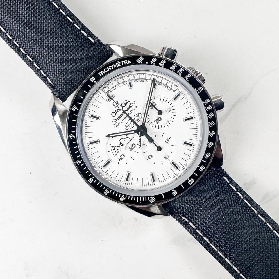 ساعة اوميجا للرجال Omega (ميرور اوريجينال) موديل Speedmaster Professional Moonwatch 311.32.42.30.04.003 لون أبيض و استيك نسيج لون أسود.