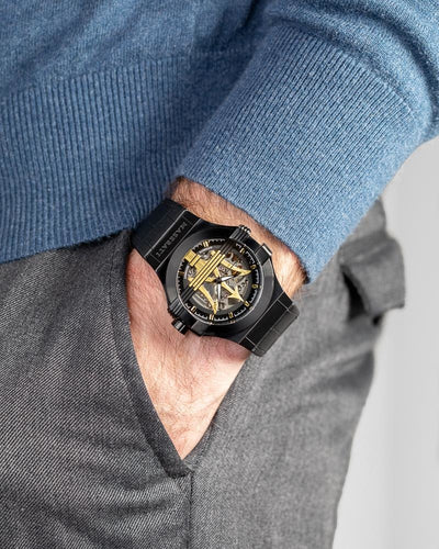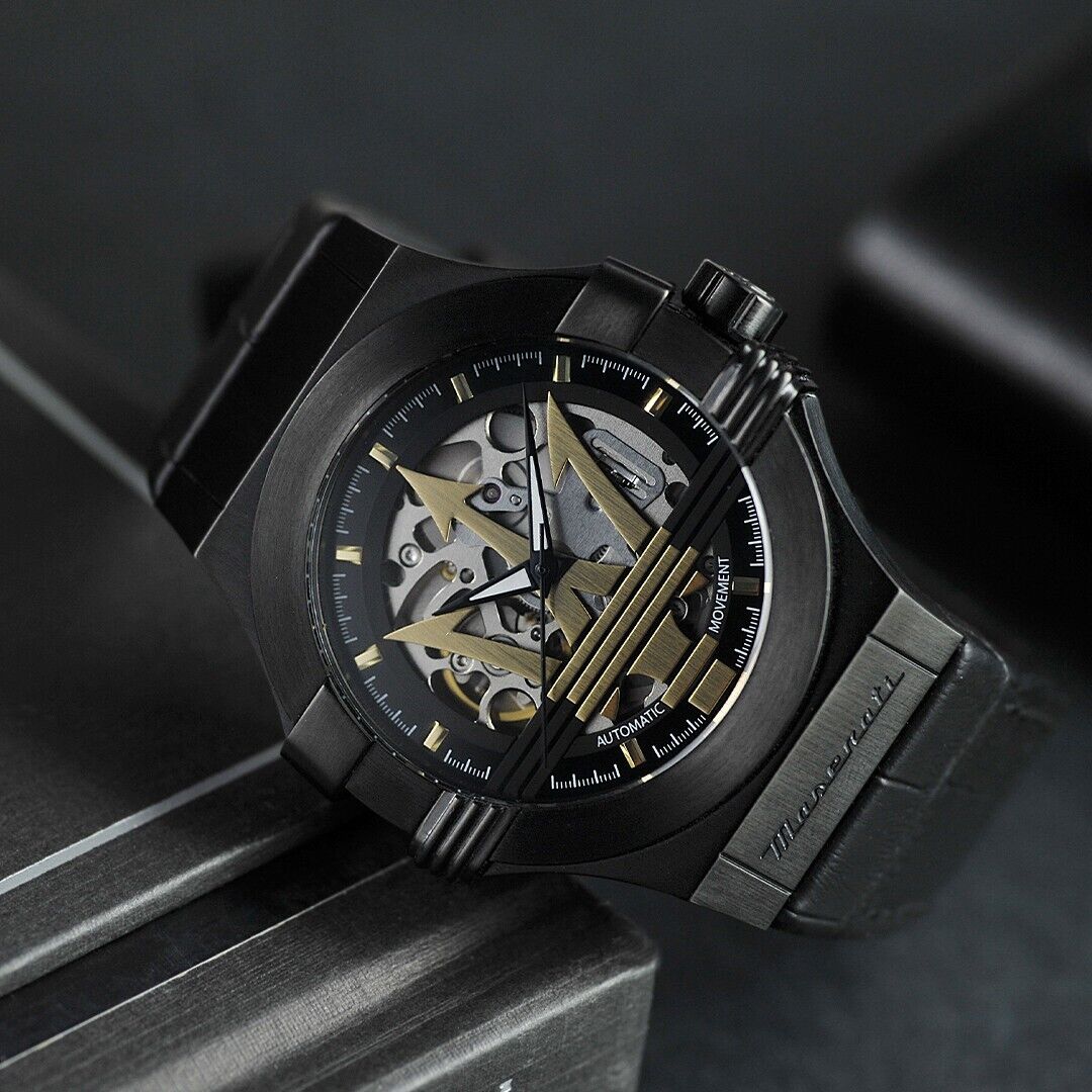 ساعة مازيراتي للرجال أصلية موديلPotenza R8821108027 لون اسود و استيك جلد طبيعي لون اسود.