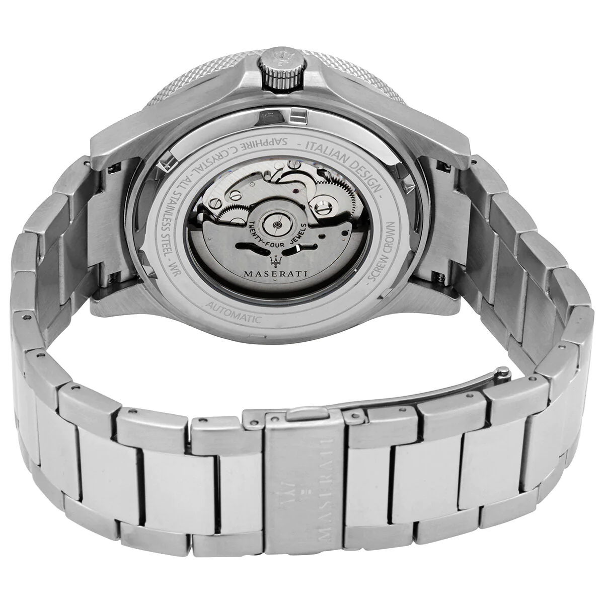 ساعة مازيراتي Maserati للرجال أصلية موديل (سفيدا) R8823140002 Sfida بـ لون اسود و استيك معدن ستانلس ستيل بـ لون فضي.