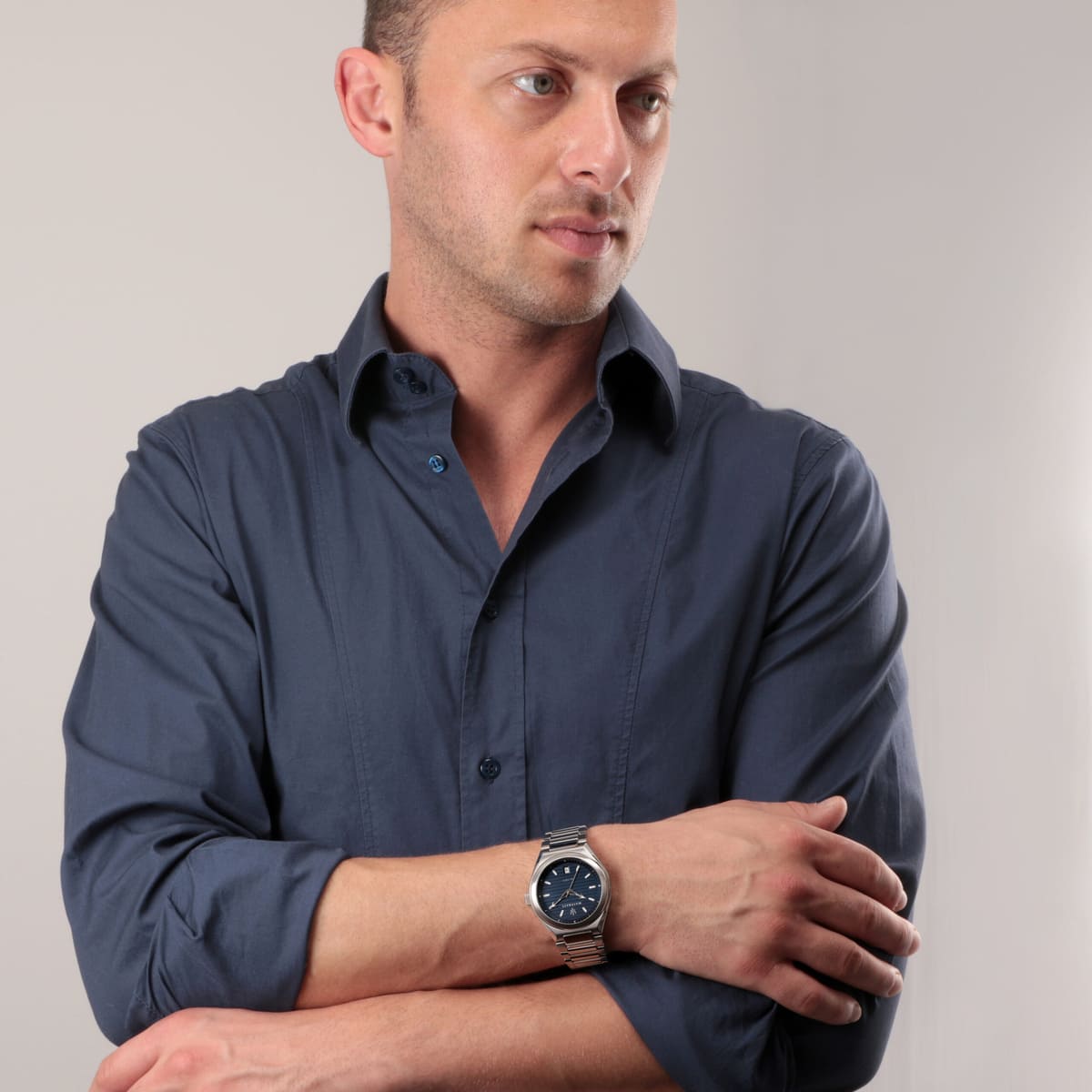 ساعة مازيراتي Maserati للرجال أصلية موديل (تريكونك)Triconic R8853139002 لون ازرق و استيك معدن ستانلس ستيل بلون فضي.