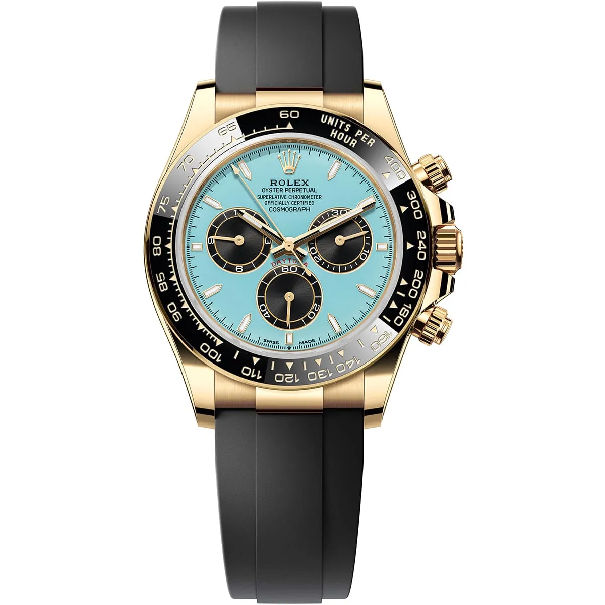 ساعة رولكس Rolex للرجال (ميرور اوريجنال) موديل Daytona 126518LN-0014 لون فيروزي و استيك سيليكون مطاط لون أسود.