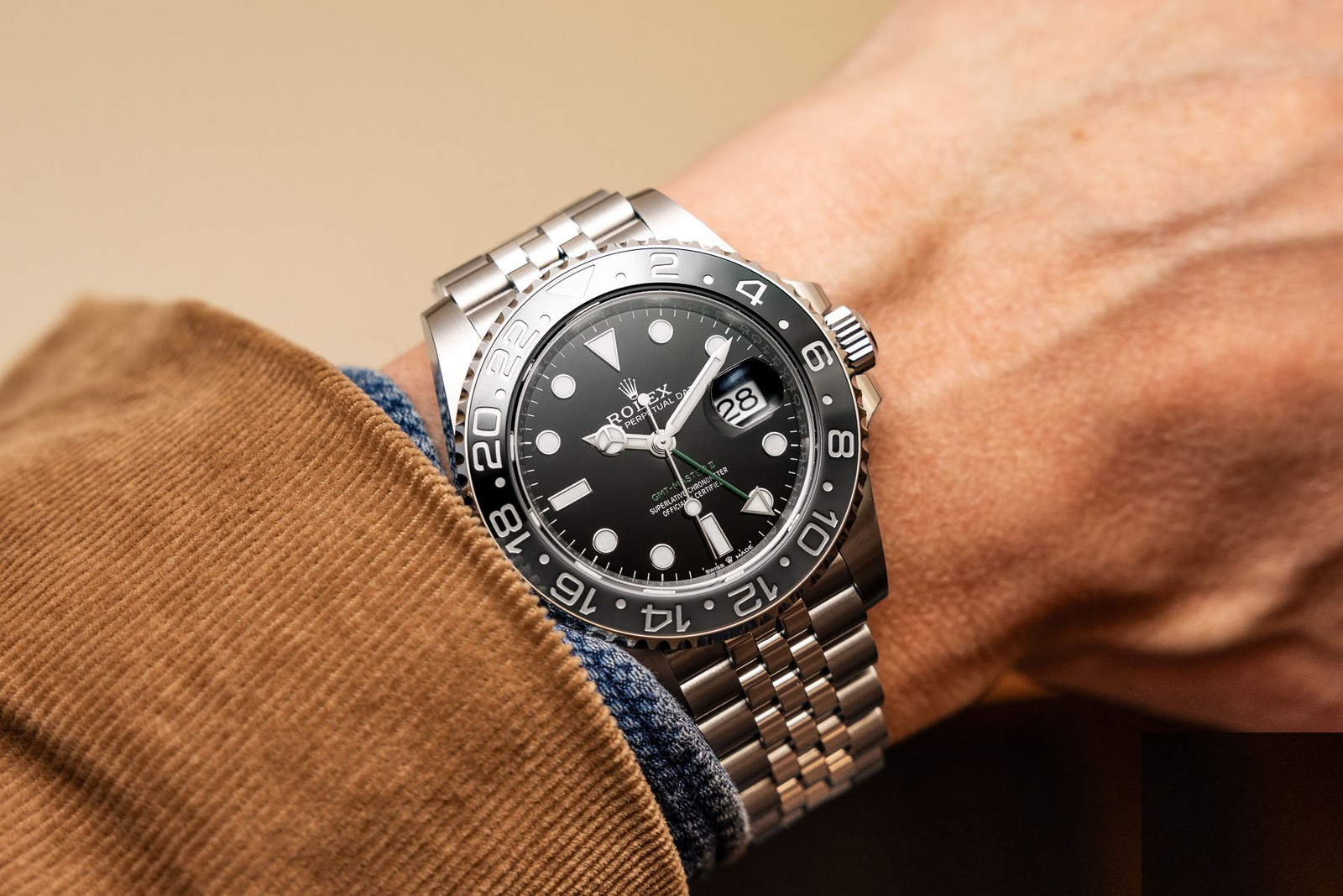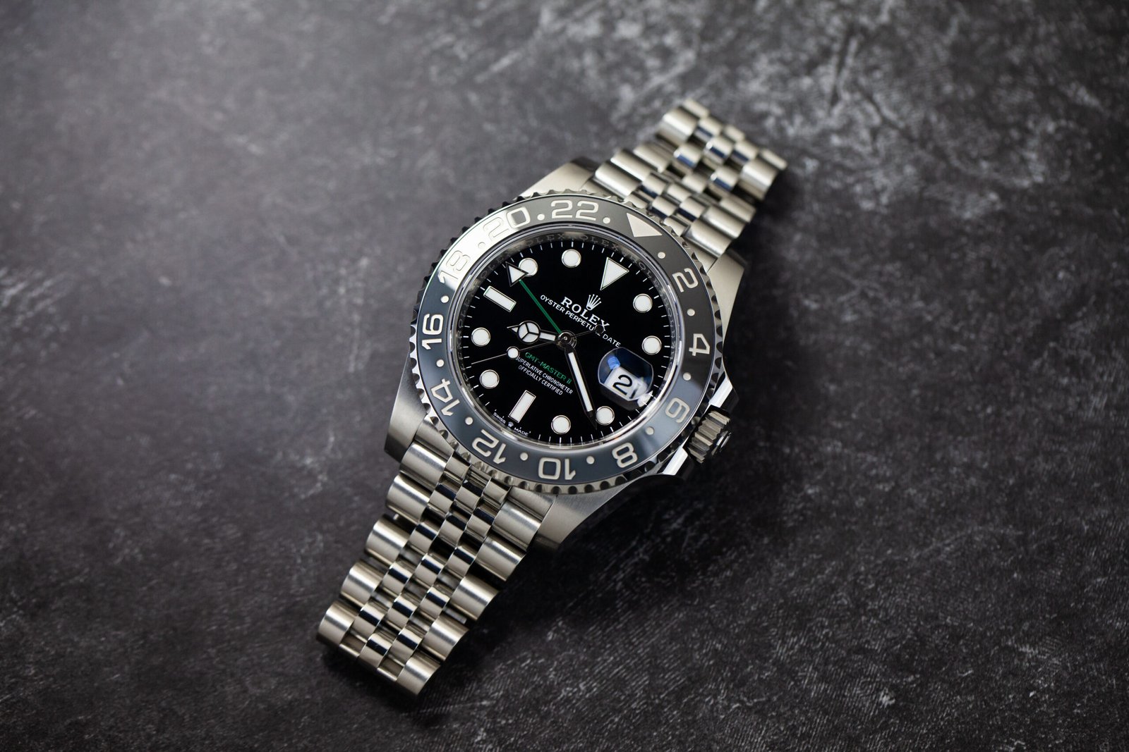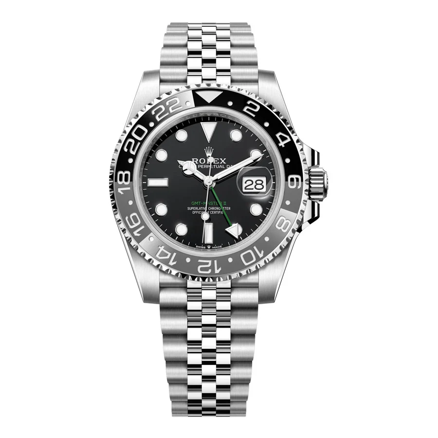 ساعة رولكس Rolex للرجال ميرور اوريجنال موديل GMT-Master II 126710GRNR-0003 لون أسود و استيك معدن ستانلس لون فضي.