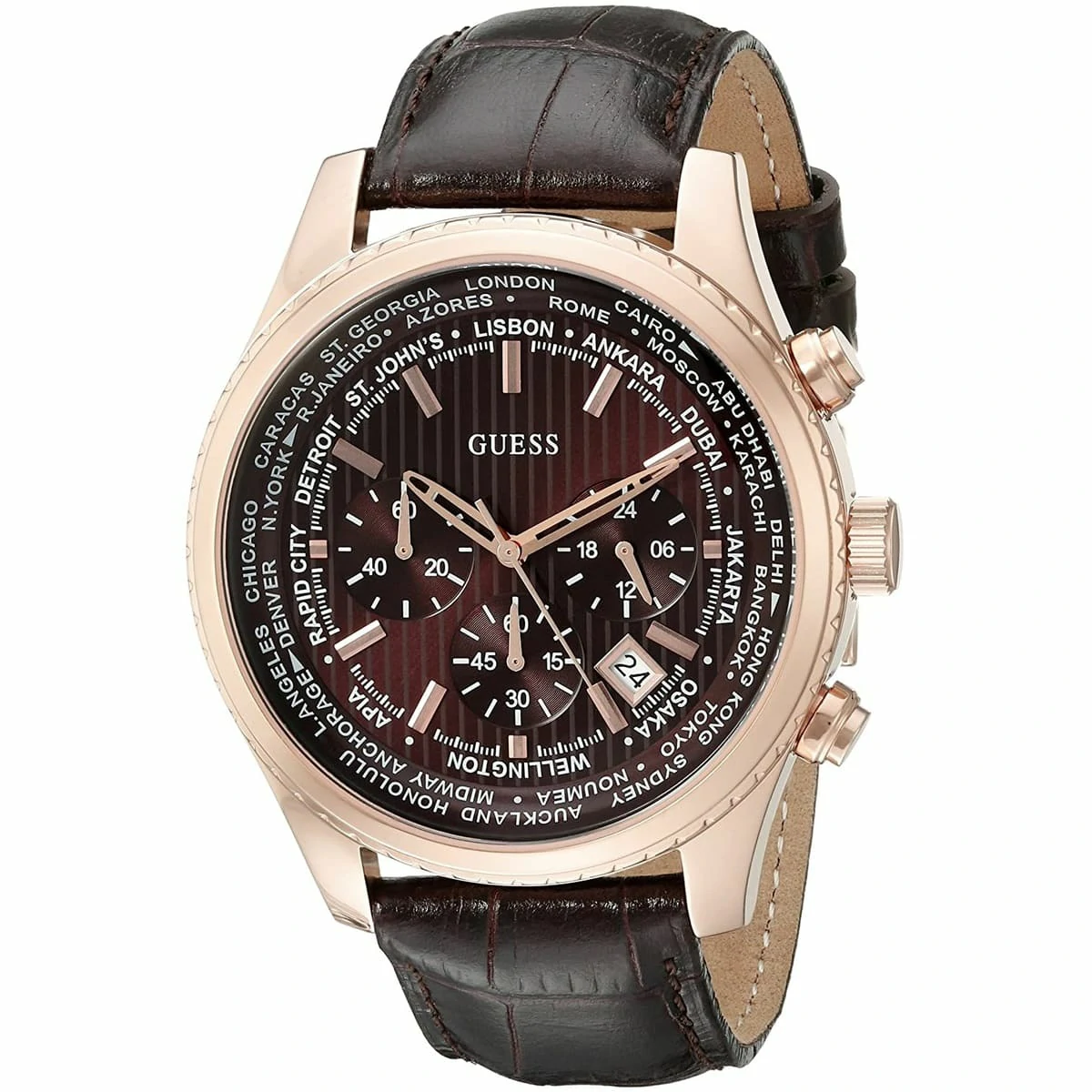 ساعة جيس Guess للرجال اصلية موديل (برسيوت) Pursuit W0500G3 لون بني واستيك جلد طبيعي لون بني.