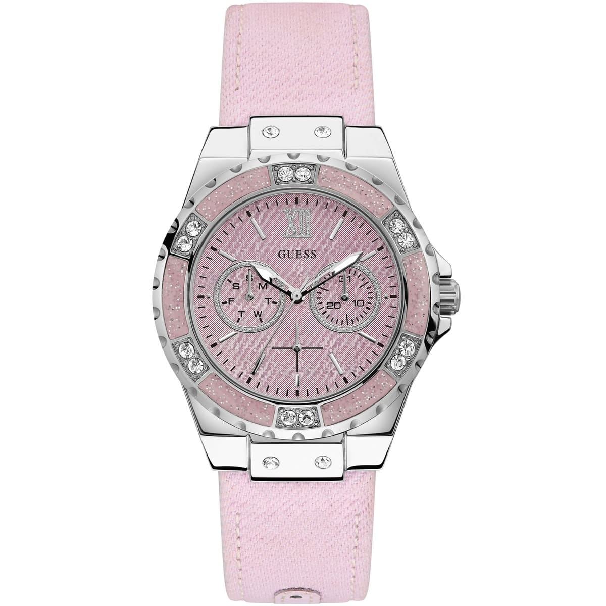 ساعة جيس Guess للنساء اصلية موديل Limelight W0775L15 لون وردي واستيك قماش جينز لون وردي.