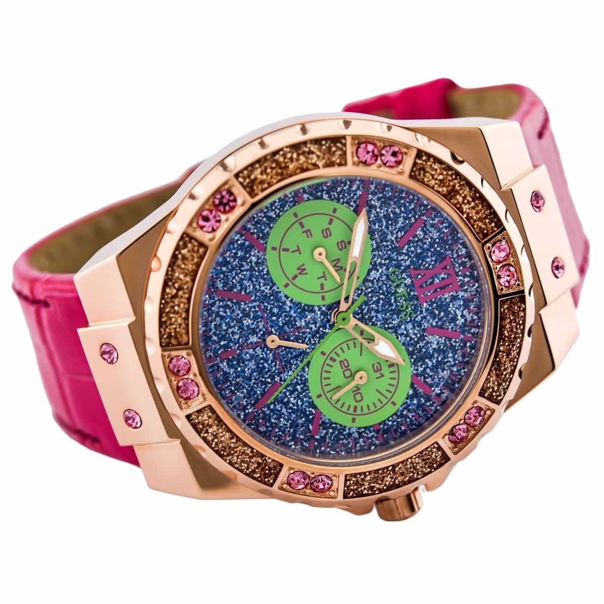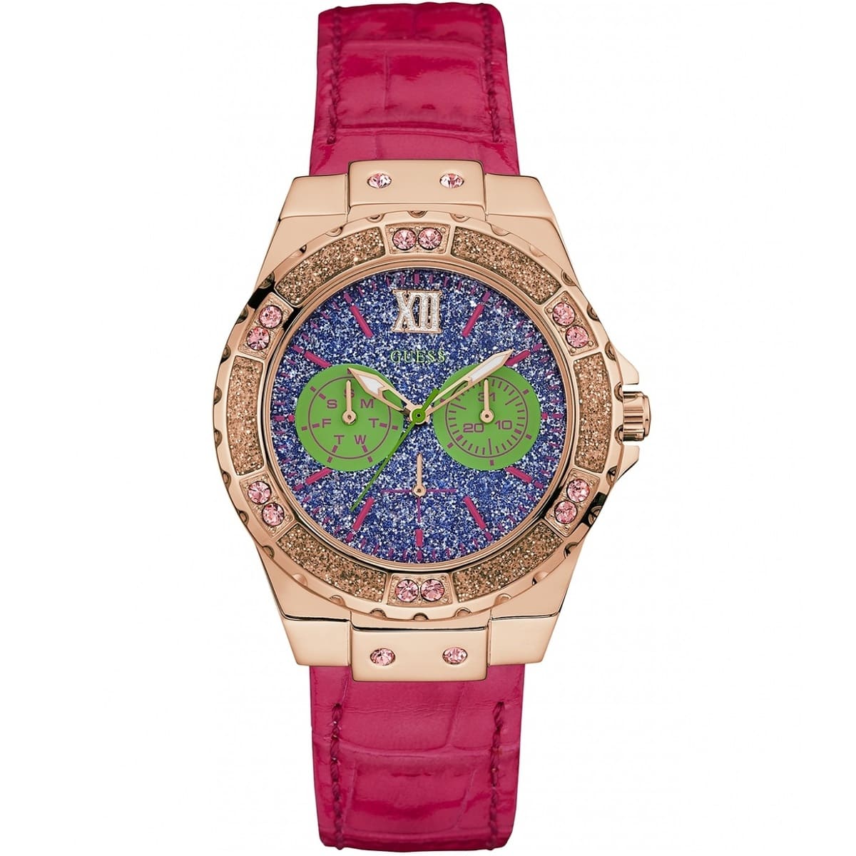 ساعة جيس للنساء اصلية موديل (لايم لايت) Limelight W0775L4 بلون ازرق واستيك جلد بلون احمر زهري.